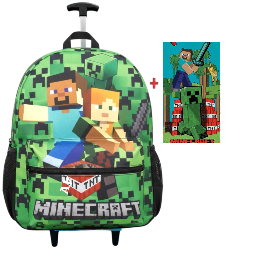 Mochila Rodinha Escolar Juvenil Jogos + Toalha
