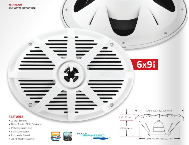 Alto Falante Boss Marinizado 6X9 Pol 350W Náutico Lancha Par