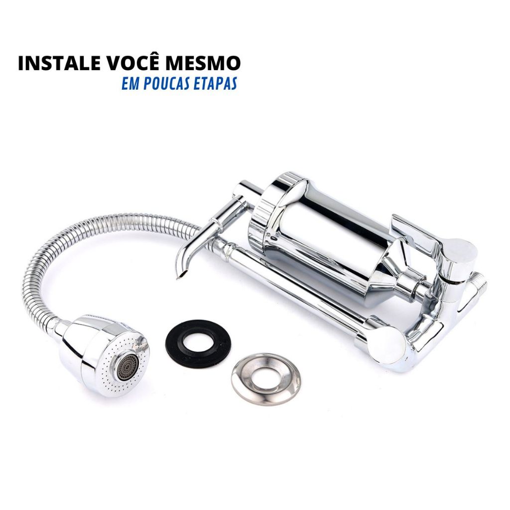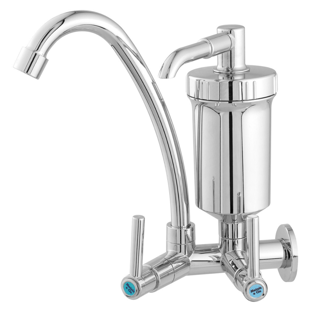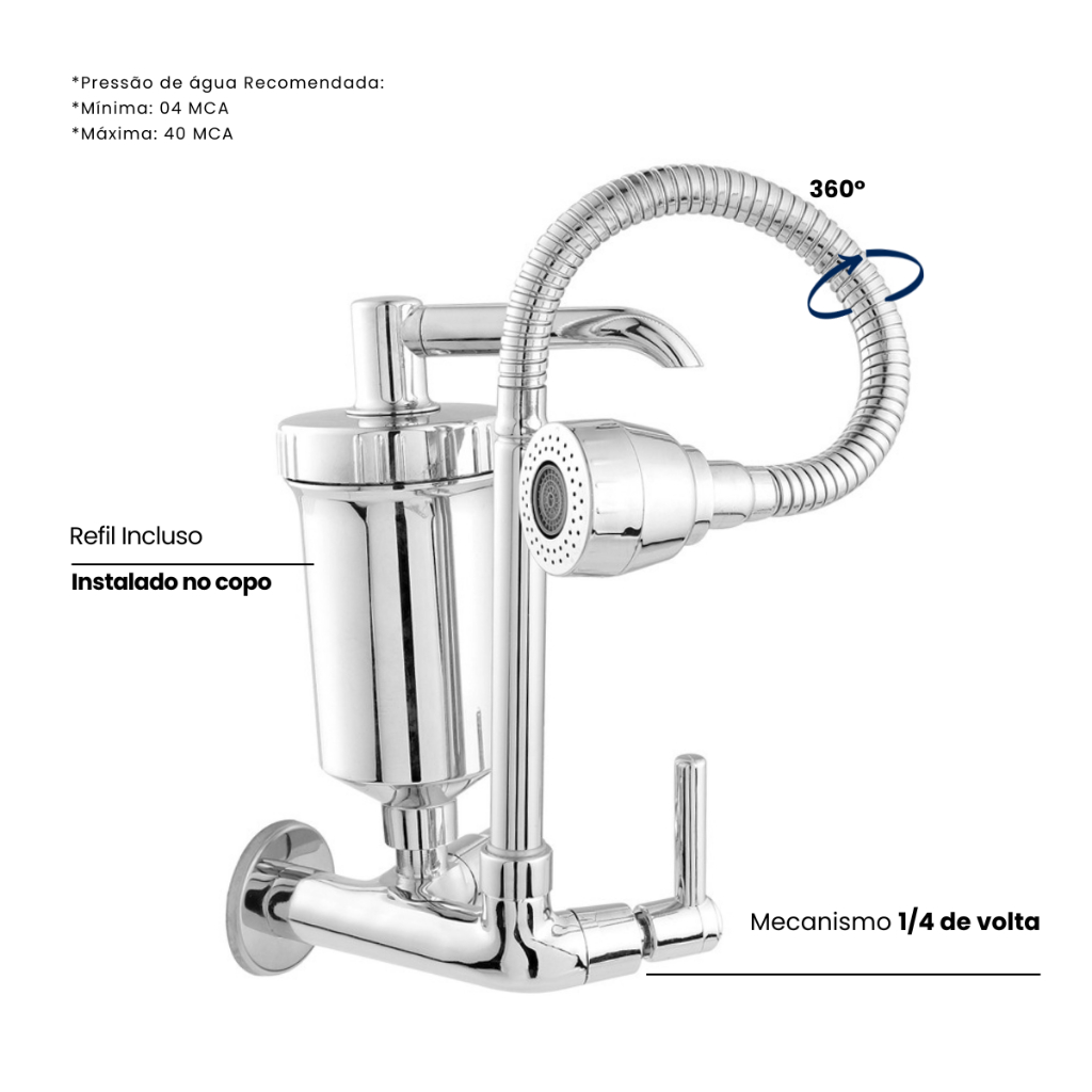 Torneira com Filtro de parede Cozinha Gourmet Flexível cromada Luxo