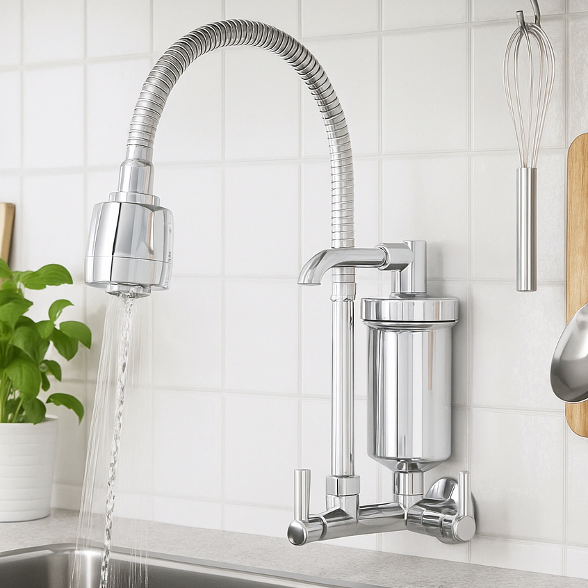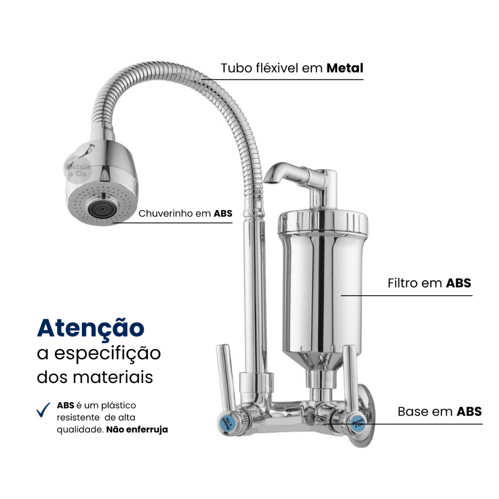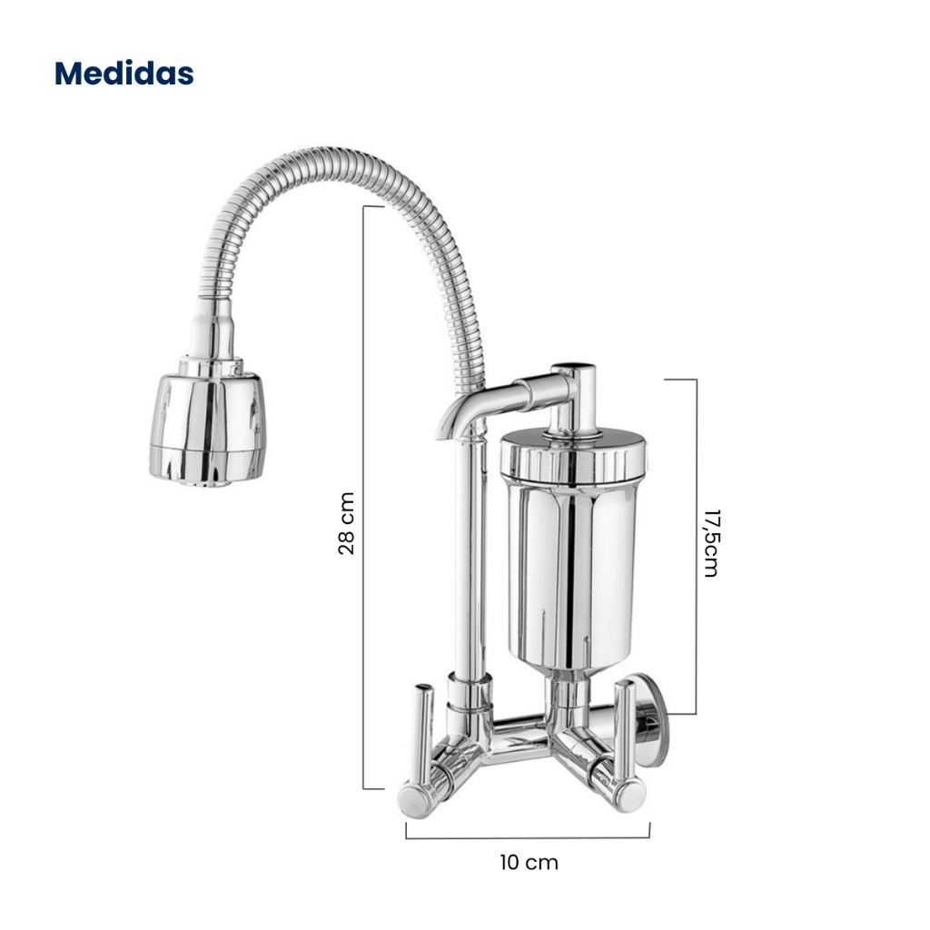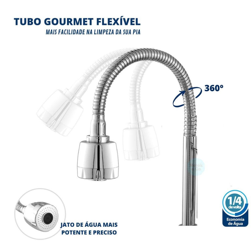 Torneira com Filtro de parede Cozinha Gourmet Flexível cromada Luxo