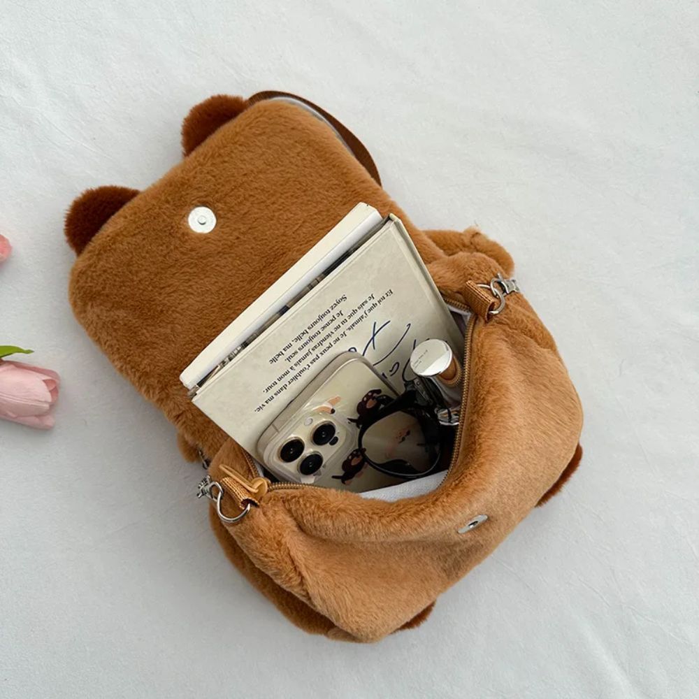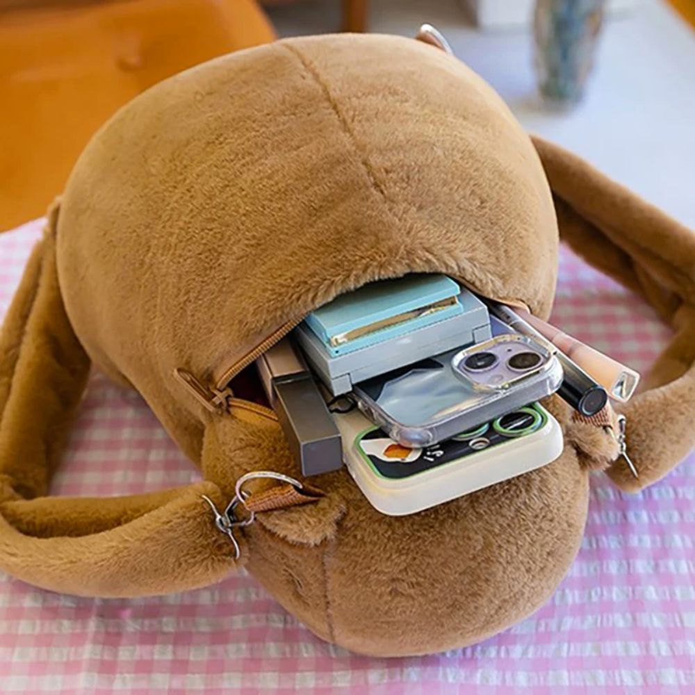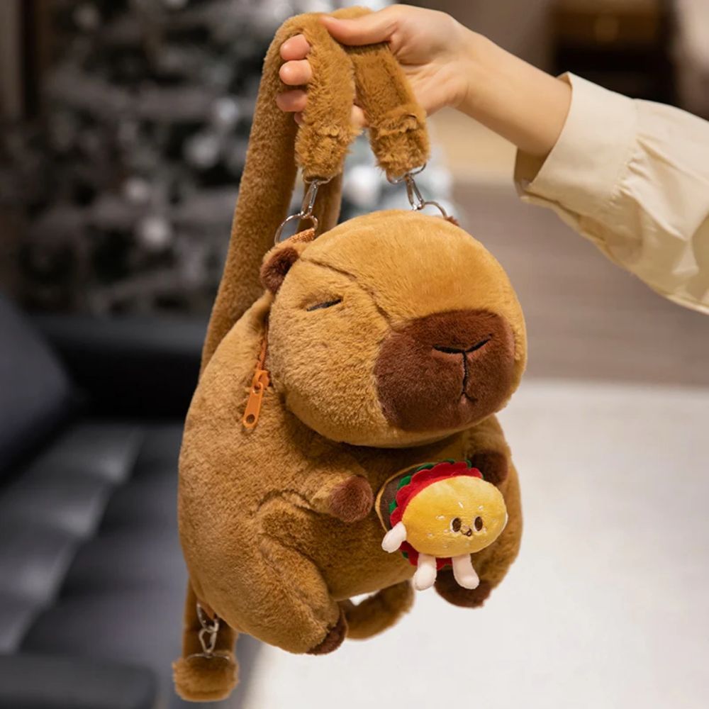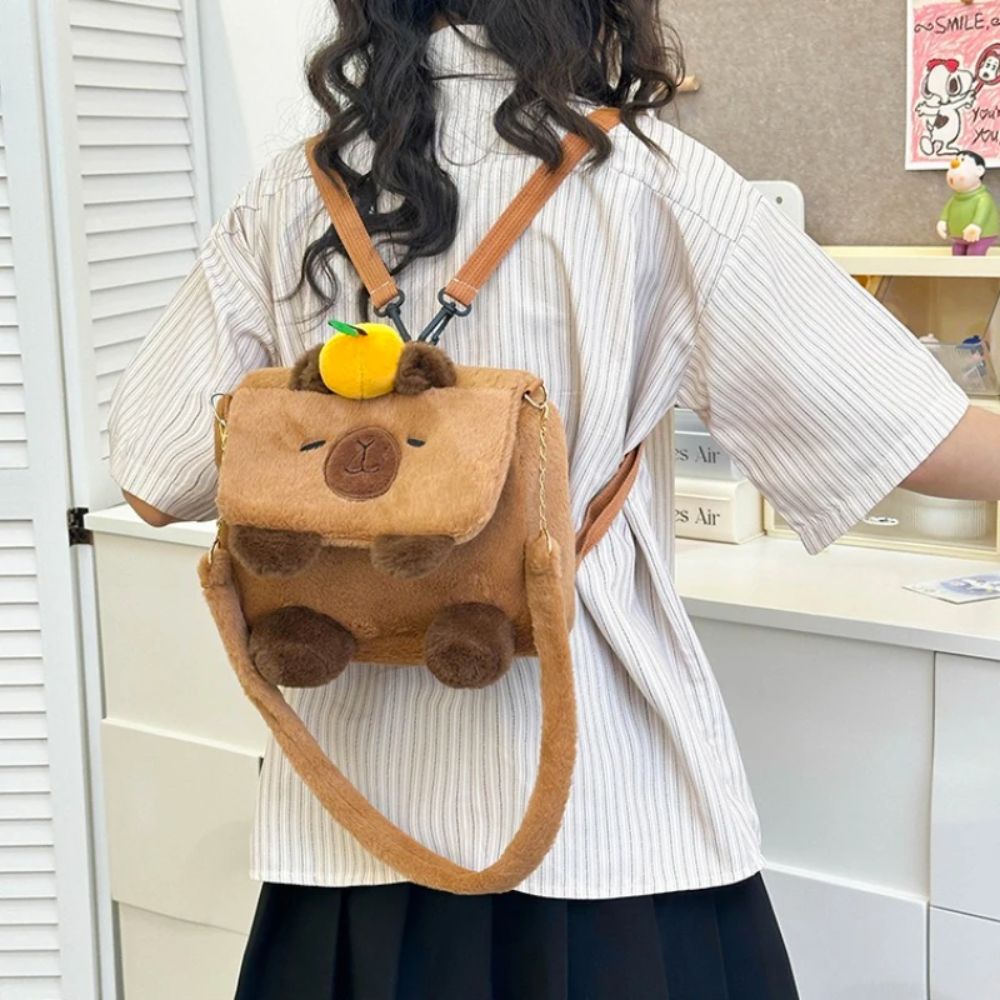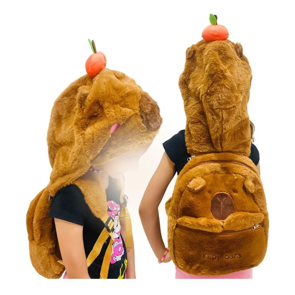 Mochila Pelucia com touca Capivara Divertida Bolsa Passeios Escolar Crianças Infantil Varios Modelos Kawaii Fofa Animal