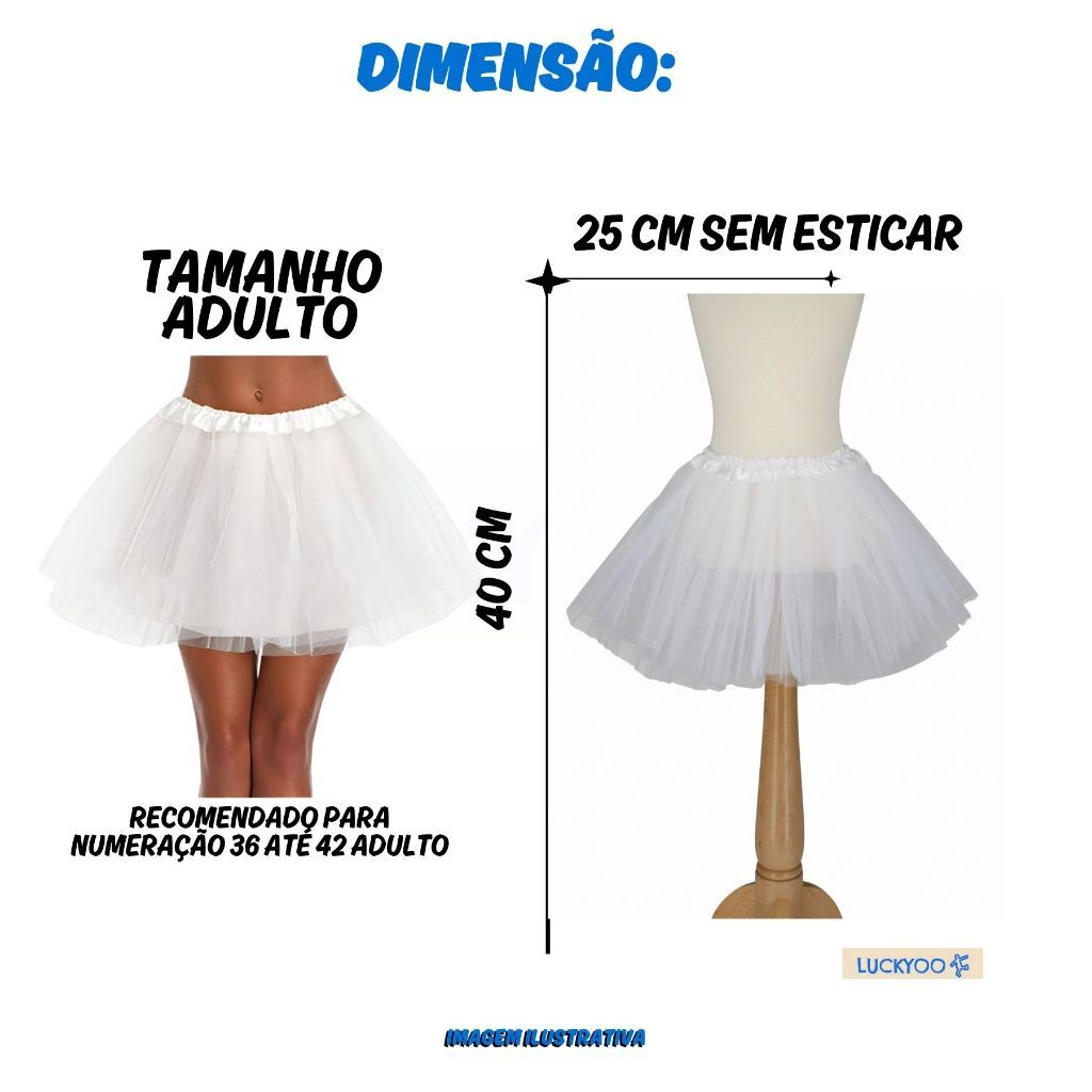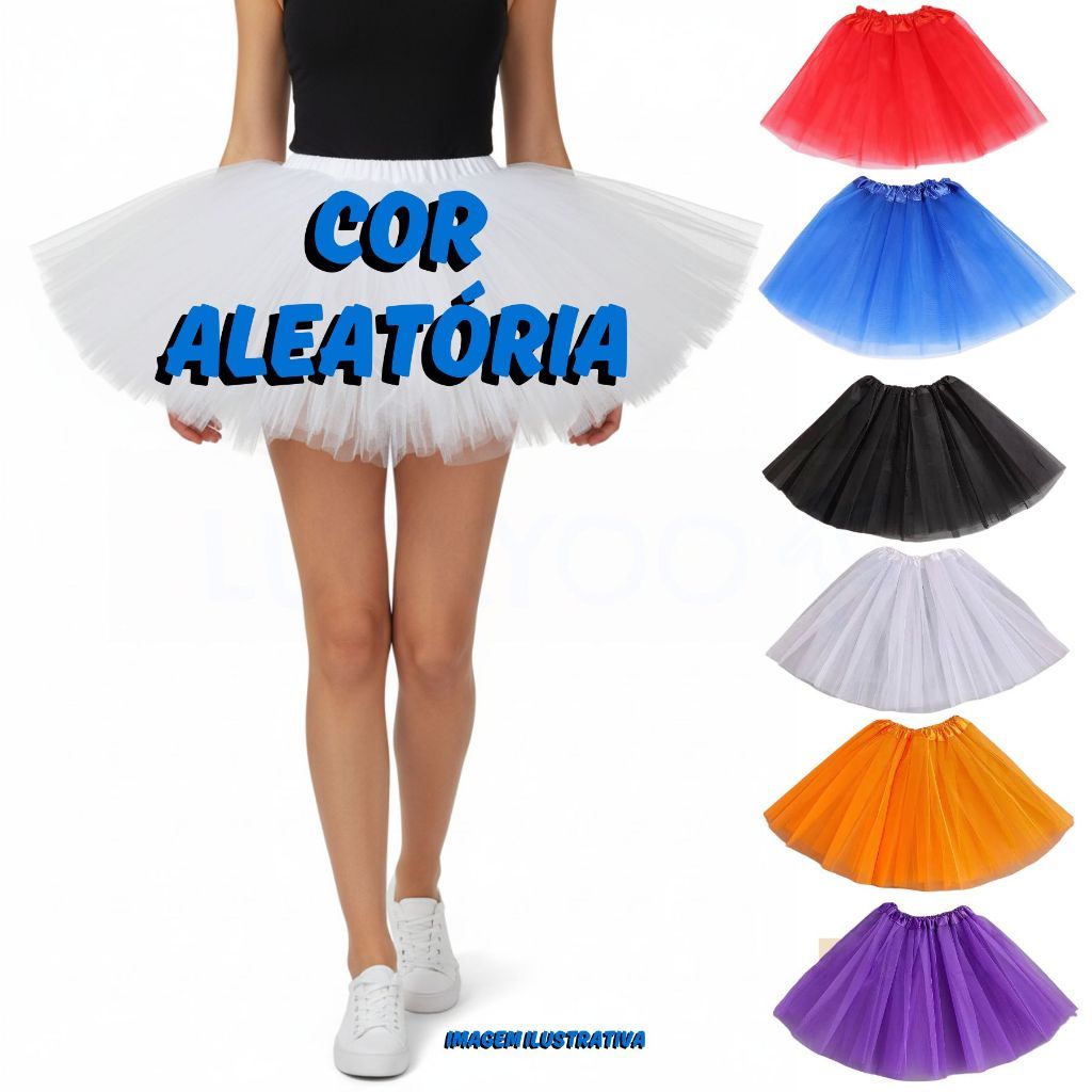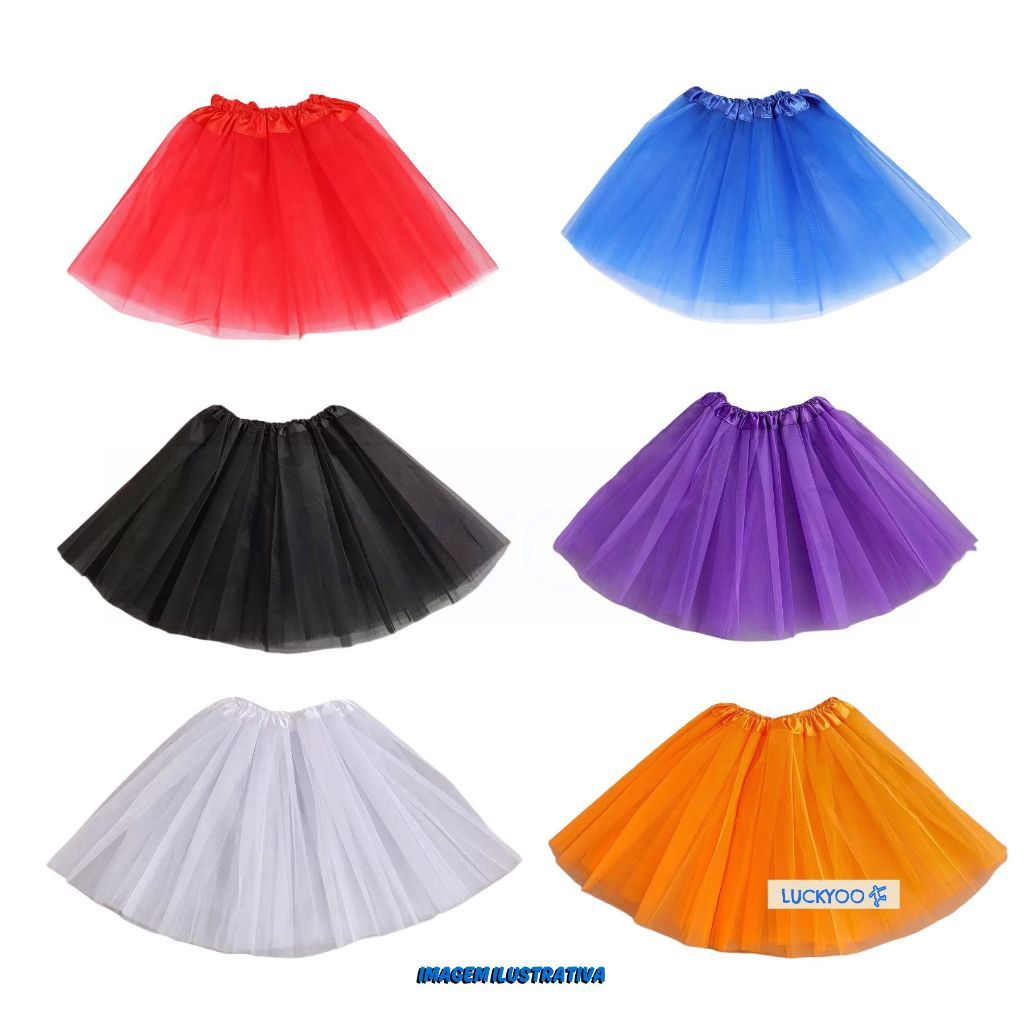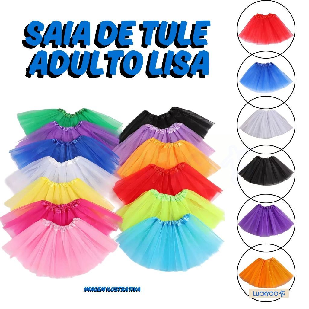 Saia Tule Adulto 40cm Tutu Lisa Colorida Fantasia Carnaval Apresentação Bailarina Eventos e Festa