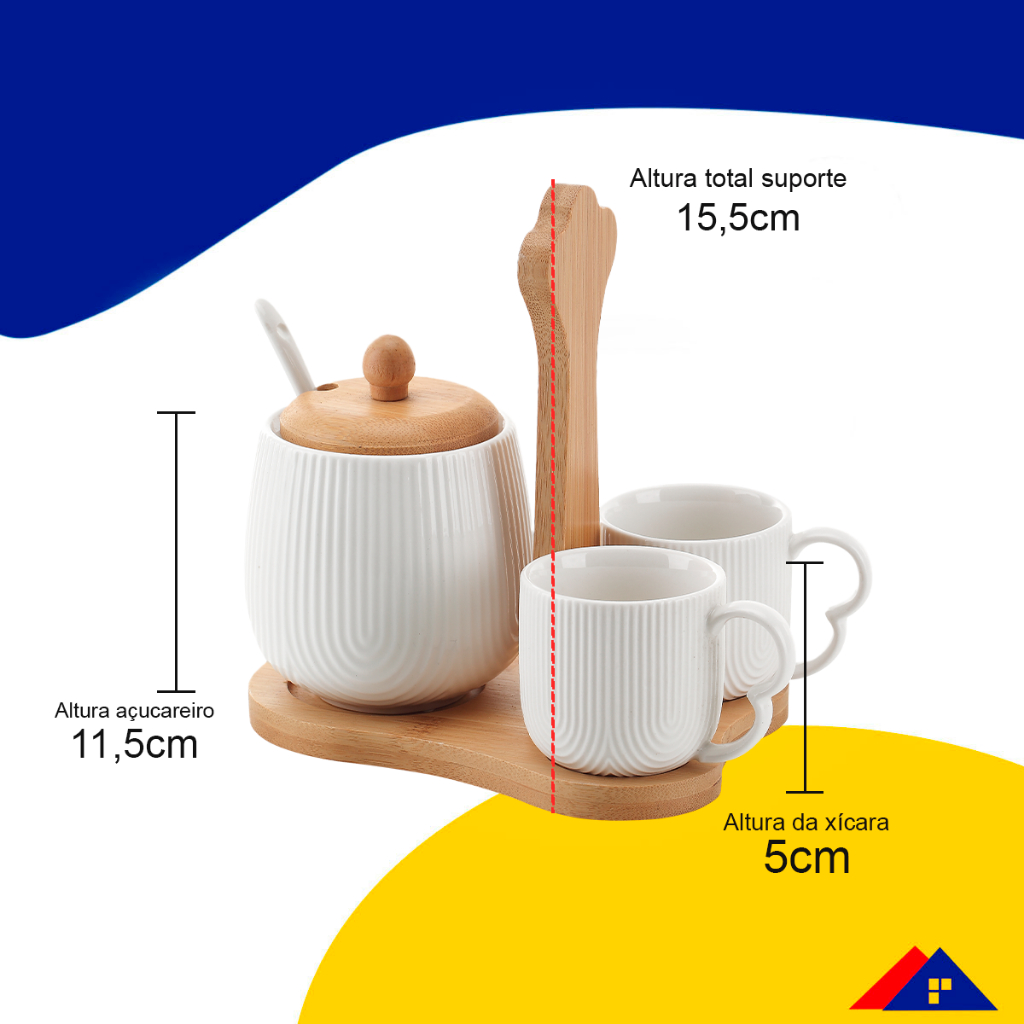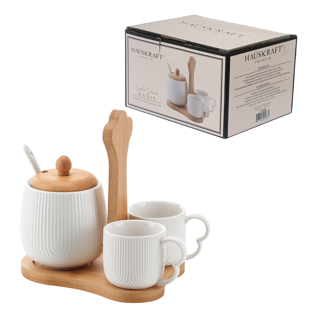 Jogo de Xícaras Oásis Café 90ml Com Açucareiro e Suporte Em Bambu