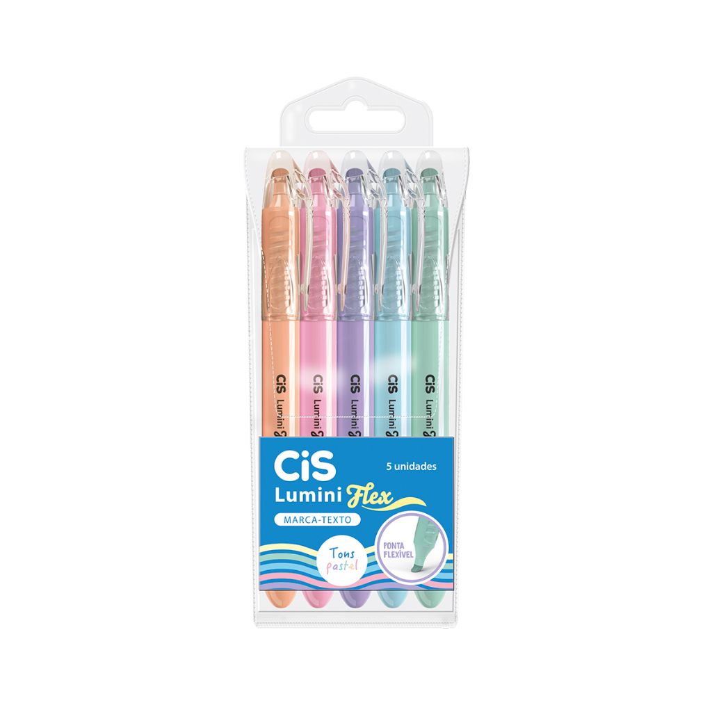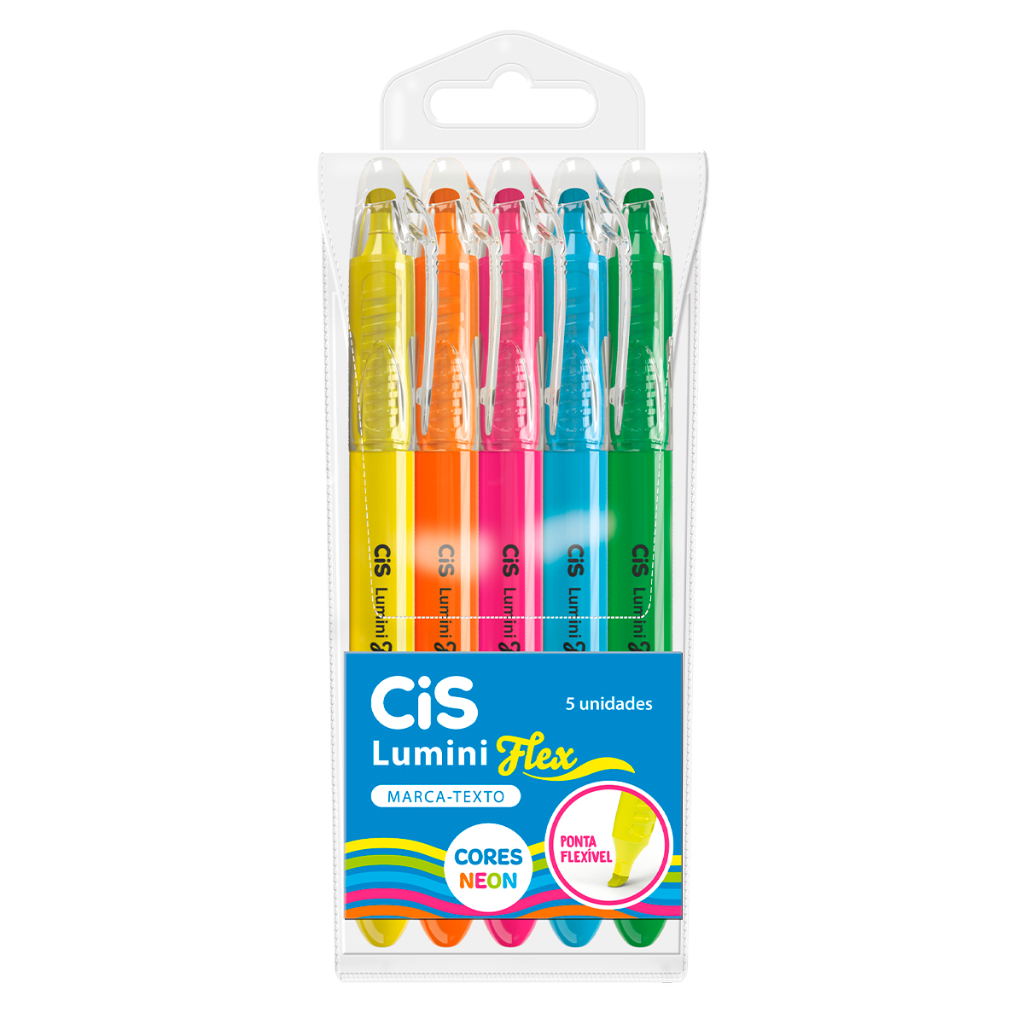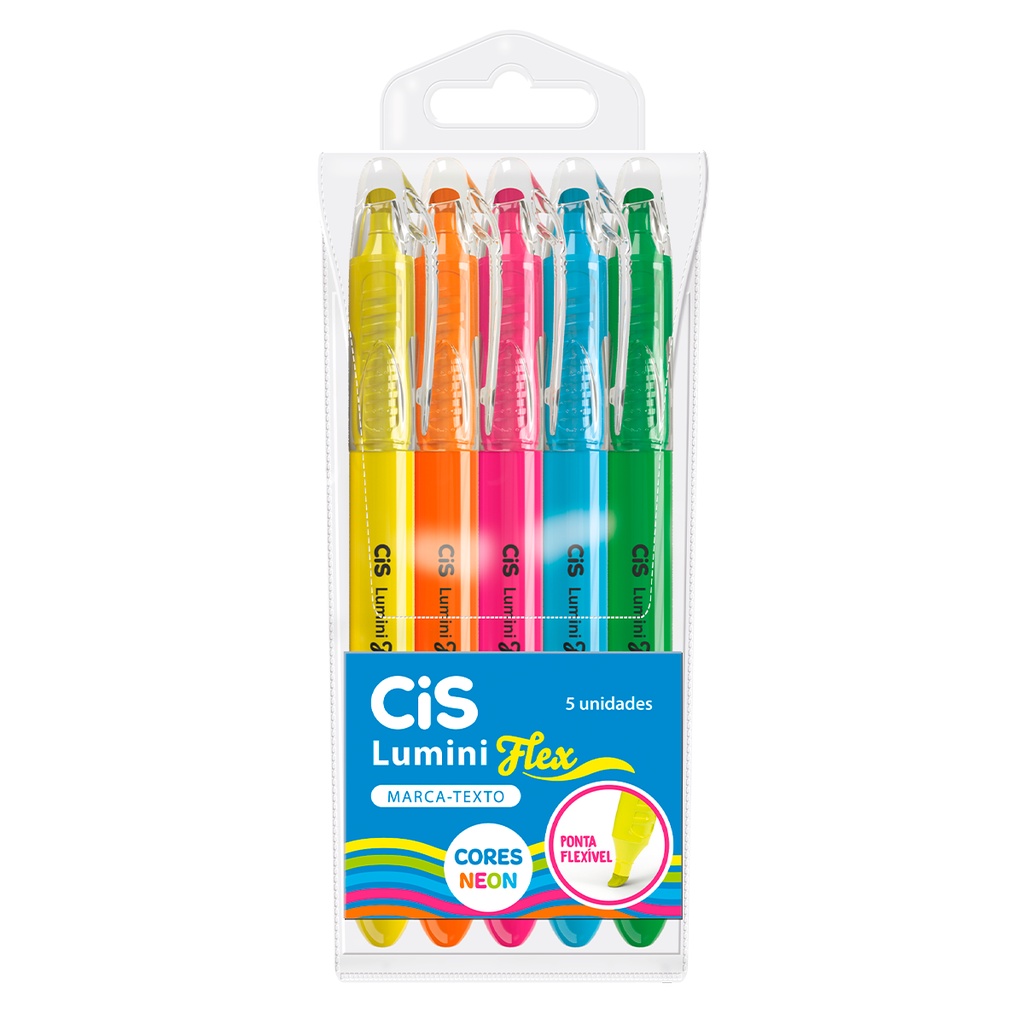 Conjunto 5 Cores Marca Texto Lumini Flex Neon e Pastel