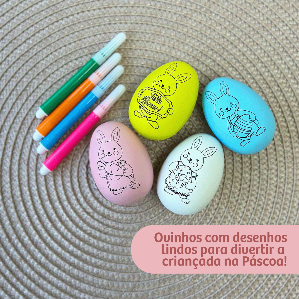 Kit de Ovos e Coelhos para Pintar de Páscoa Com Canetinhas Divertidos Lembrancinhas