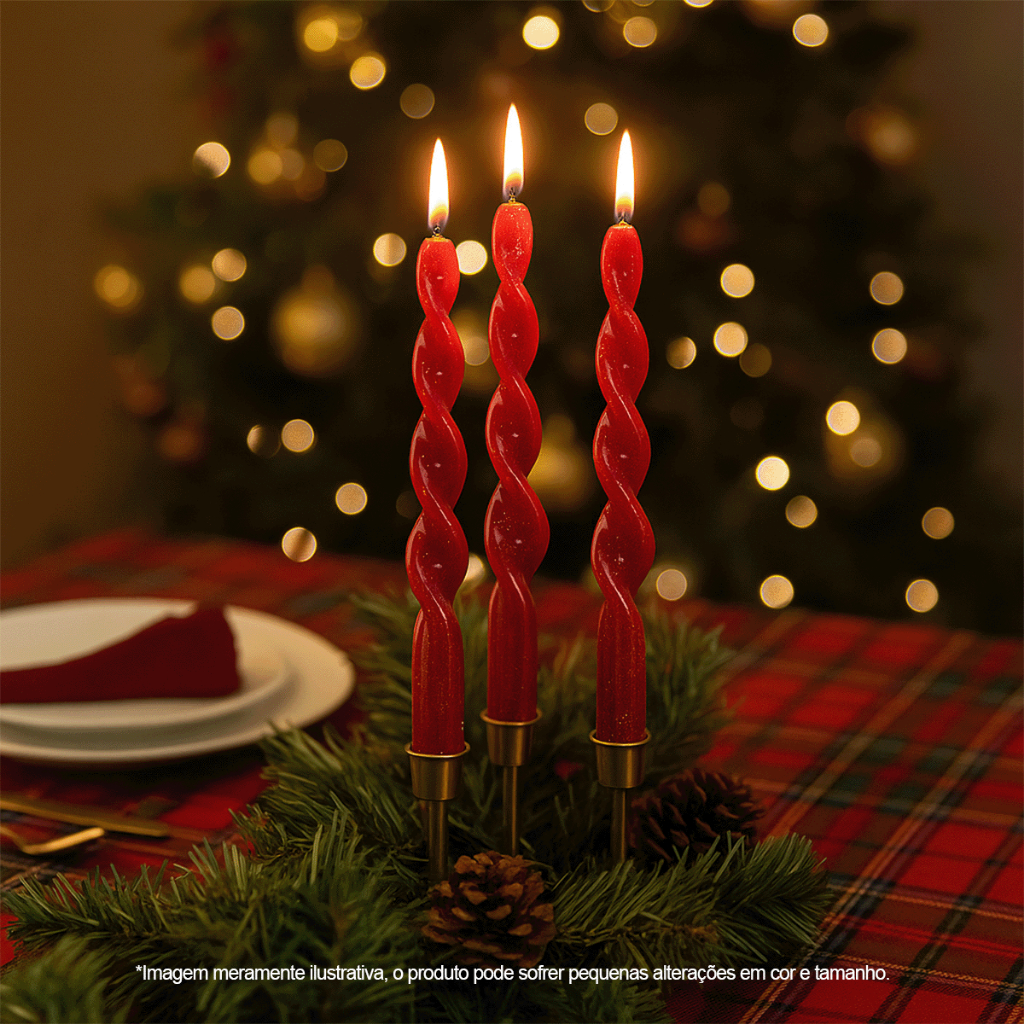 Kit 3 Velas Natalinas Decorativas Retorcidas 25cm