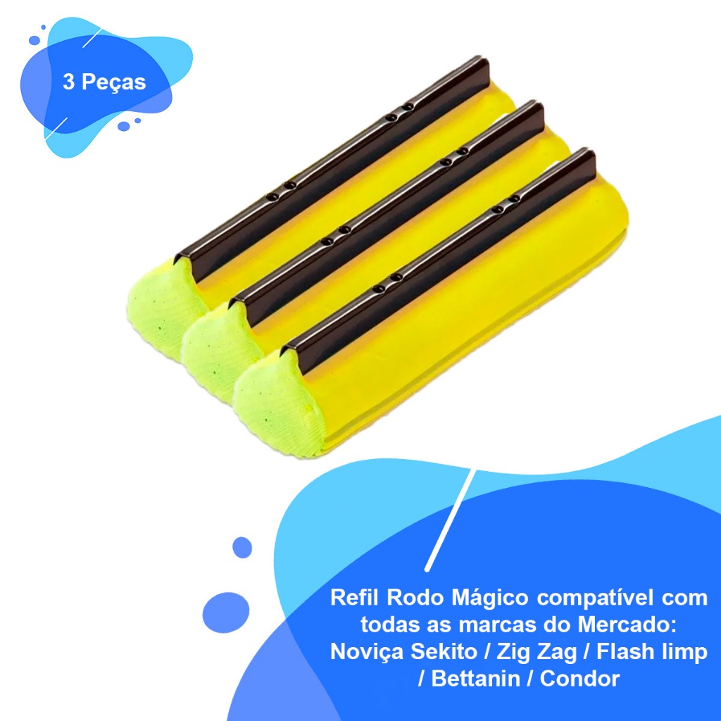 Kit Refil Mop Rodo Mágico Alta Absorção Compativel Diversos MOdelos