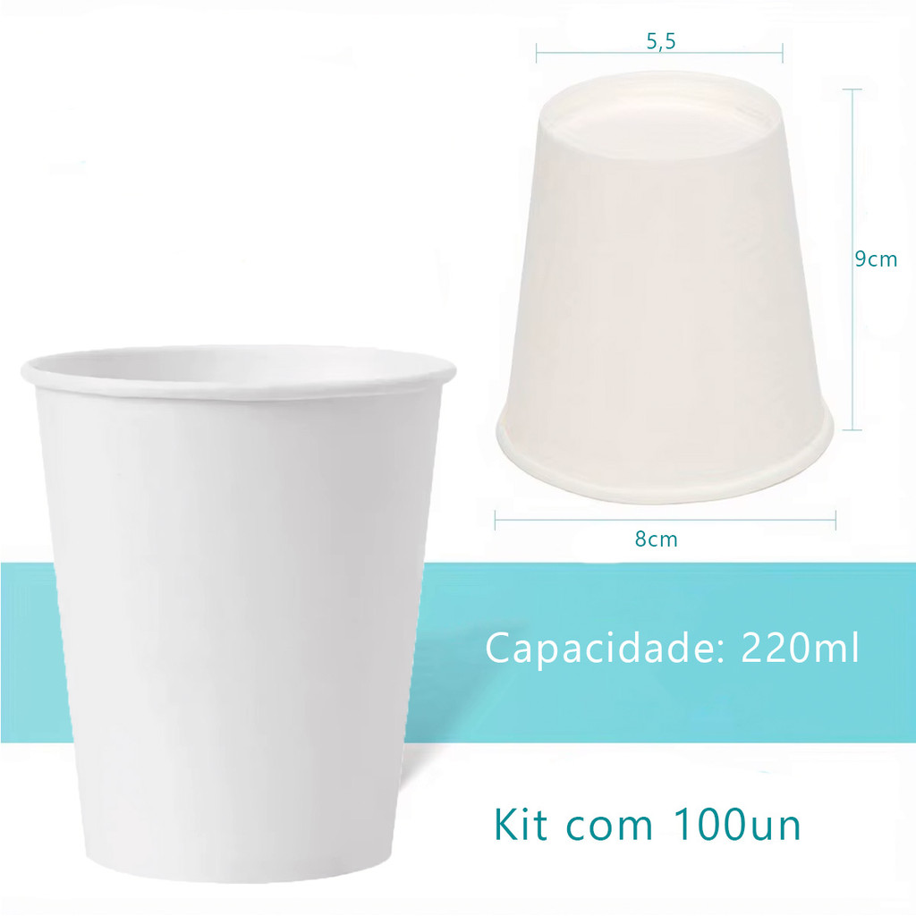 Kit 100un Copo de Papel P/ Café Biodegradável Branco - 220ml