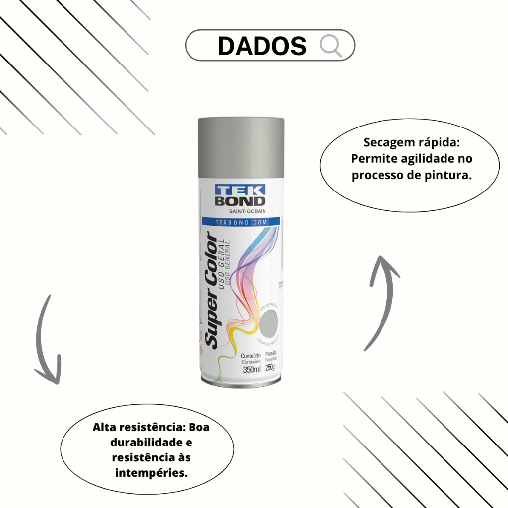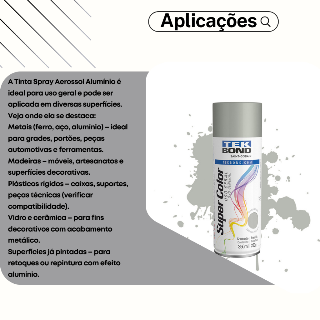 Tinta Spray Aerossol Aluminio Uso Geral 350ml 250g Tekbond