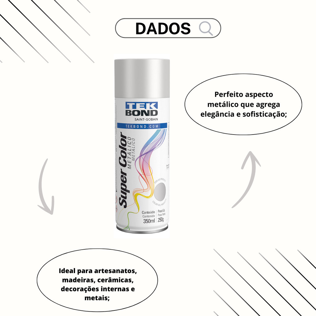 Tinta Spray Aerossol Tekbond Prata Metálico 350ml 250g
