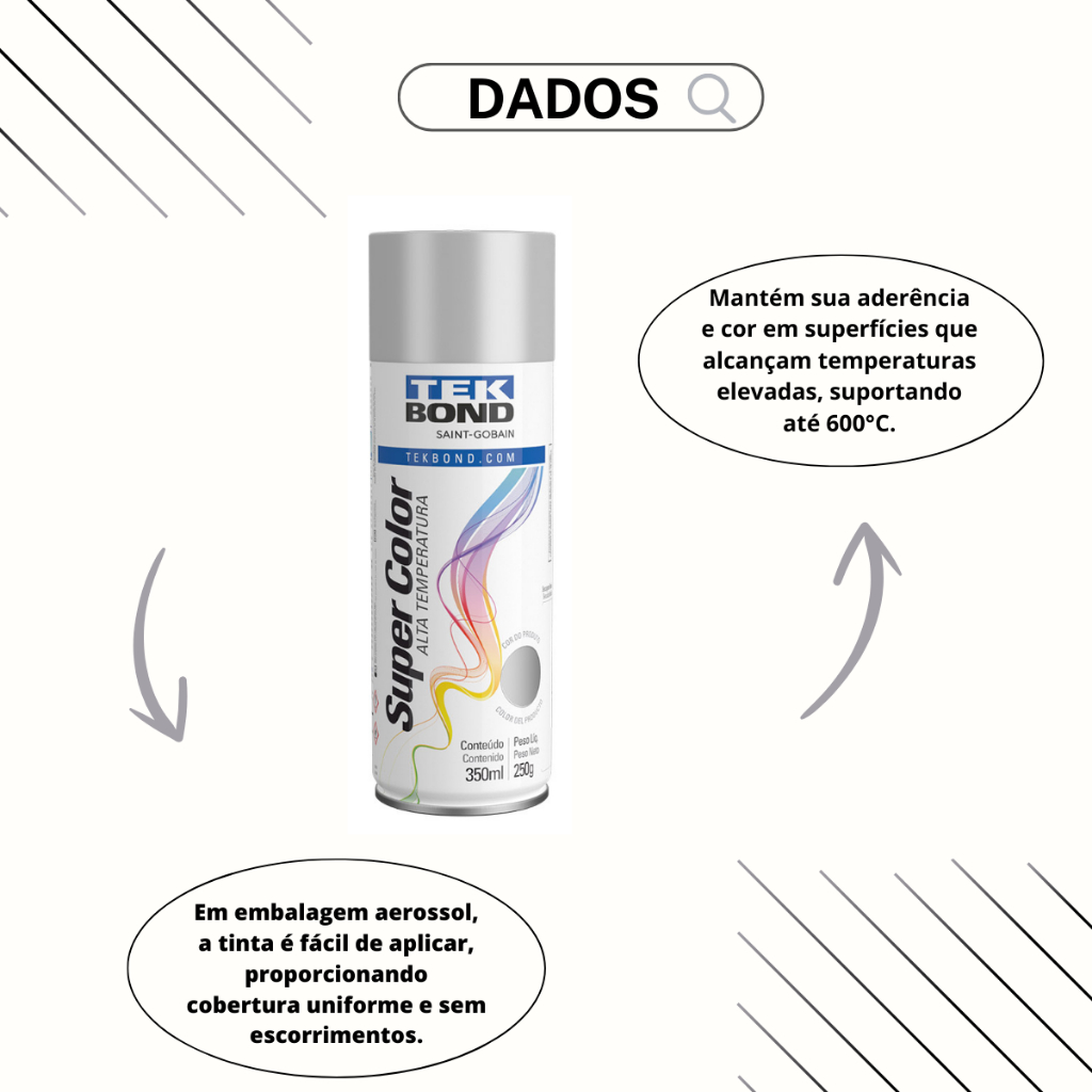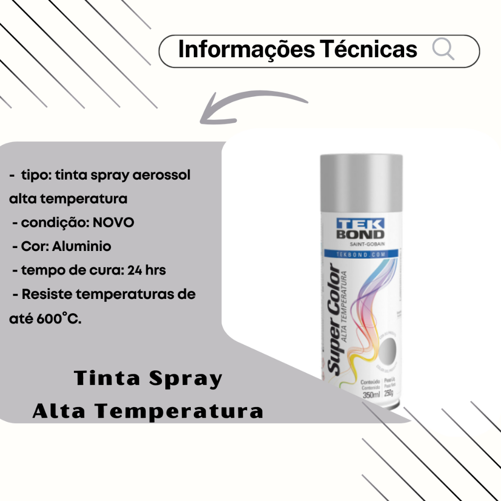 Tinta Spray Aerossol Alta Temperatura Tekbond Aluminio 350ml/250g
