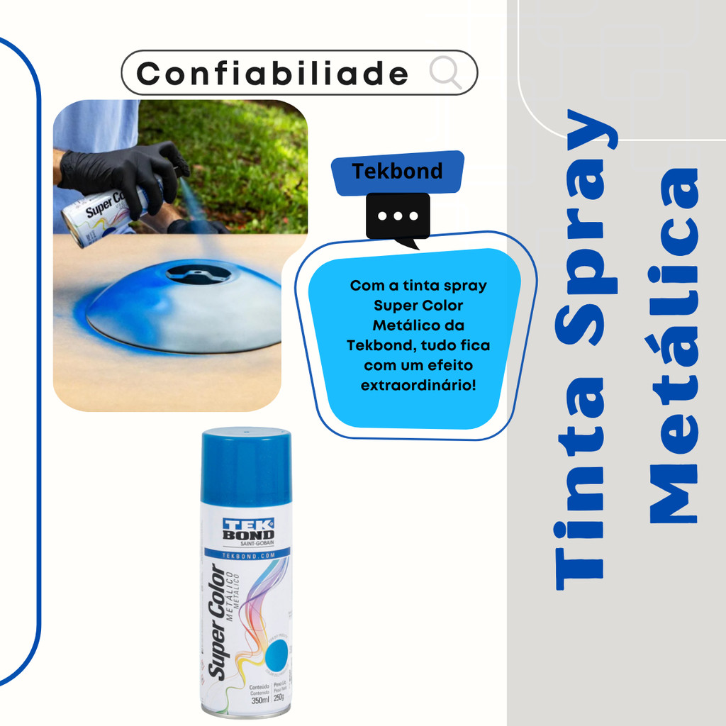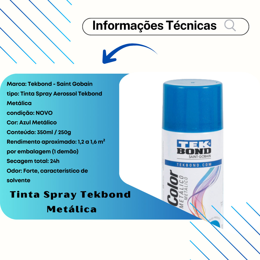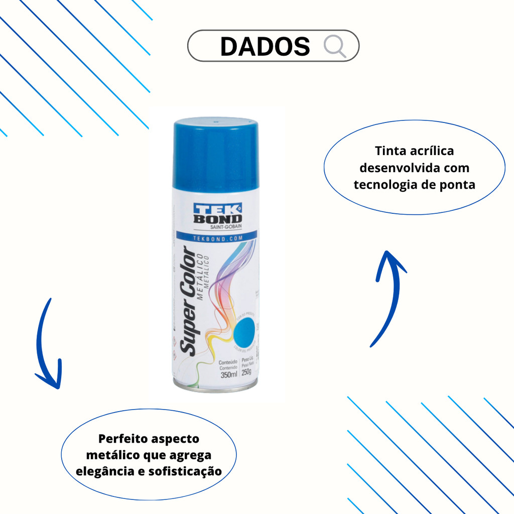 Tinta Spray Aerossol Tekbond Metálica Super Color Azul Metálico 350ml 250g