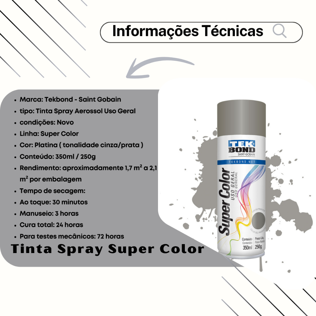 Tinta Spray Aerossol Uso Geral Platina 350ml 250g