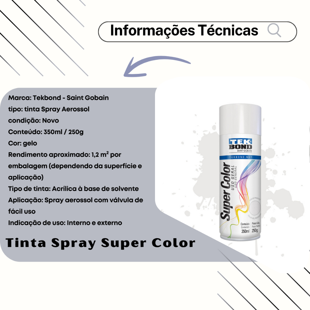 Tinta Spray Aerossol Gelo Uso Geral 350ml 250g Tekbond