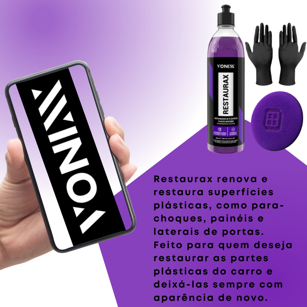 Kit Restaurax Restaurador De Plásticos Vonixx 500ml Com Aplicador E Luvas