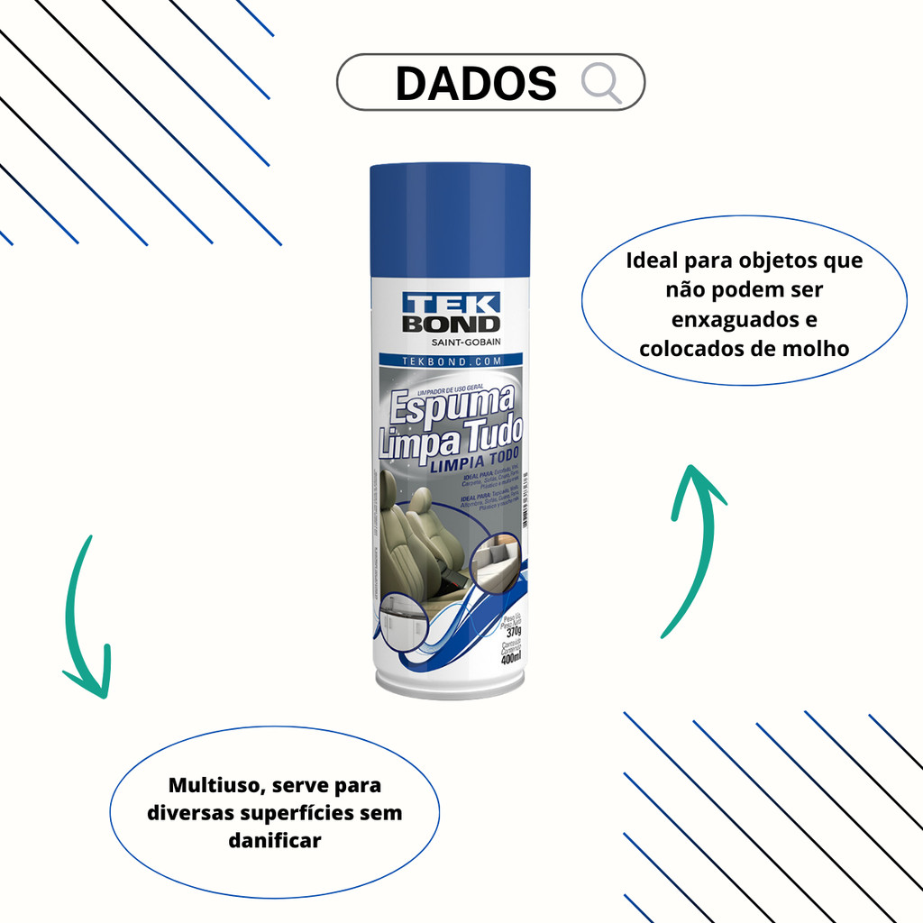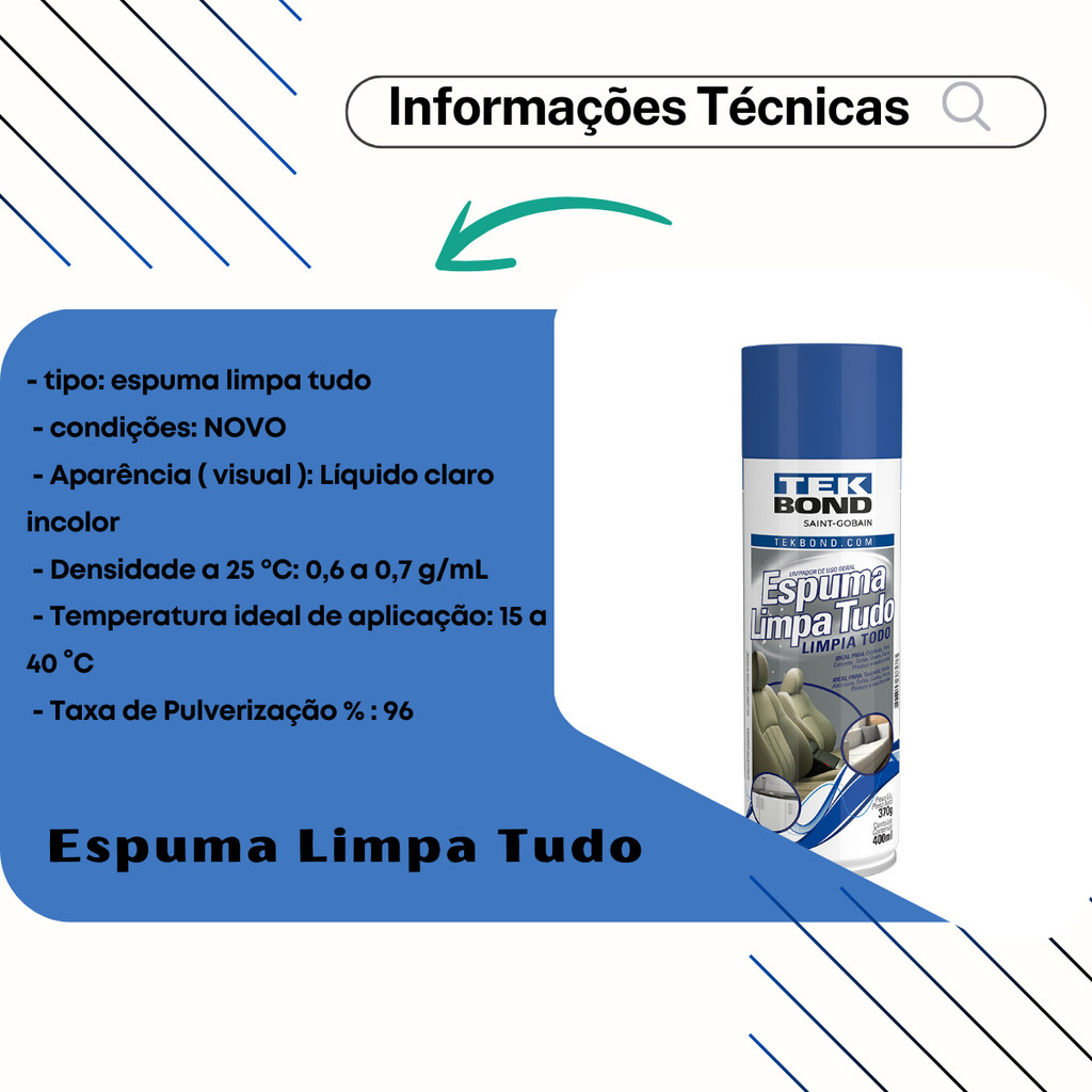 Espuma Limpa Tudo Tek Bond Estofado Carpete Couro Kit C/03 + Brinde