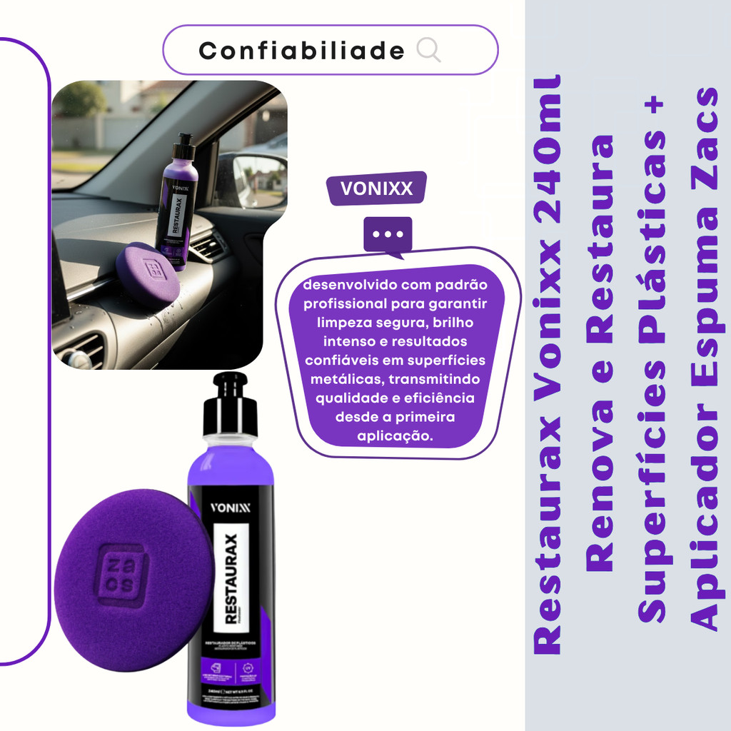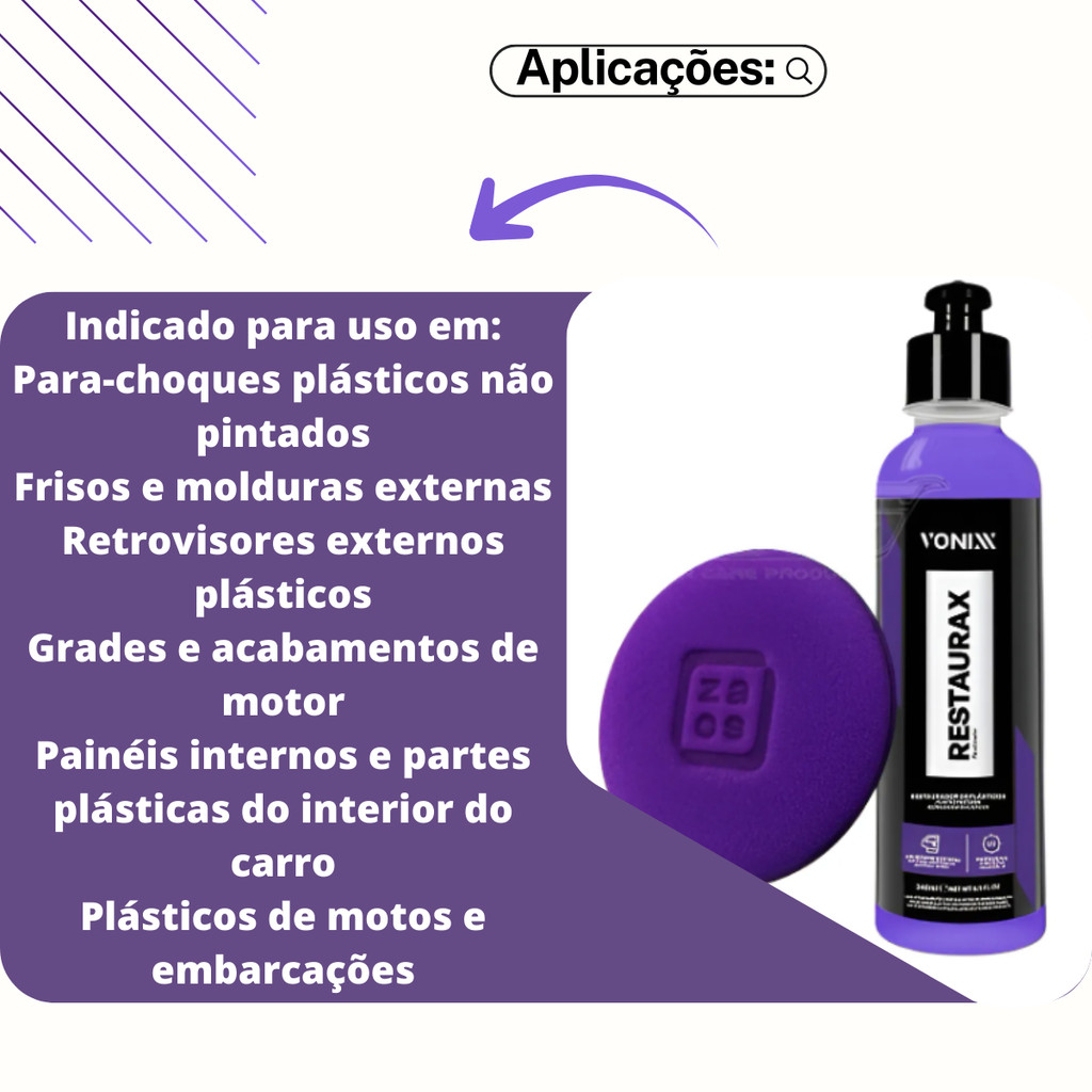 KIT Restaurax 240ml Vonixx e Aplicador Restaurador e Revitalizador de Plásticos Internos e Externos