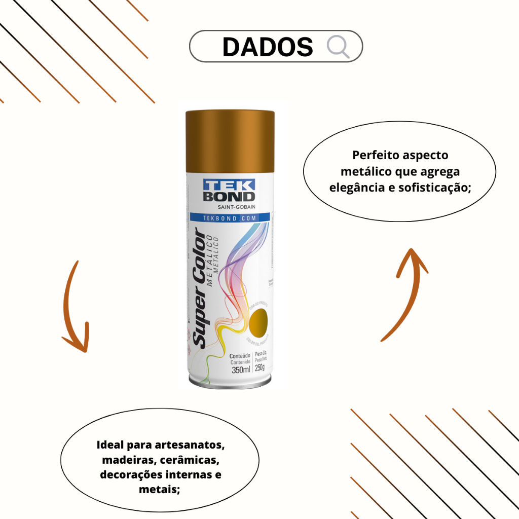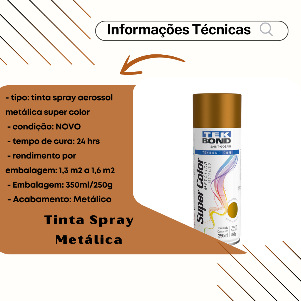 Tinta Spray Aerossol Tekbond Metálica Super Color Cobre Metálico 350ml 250g