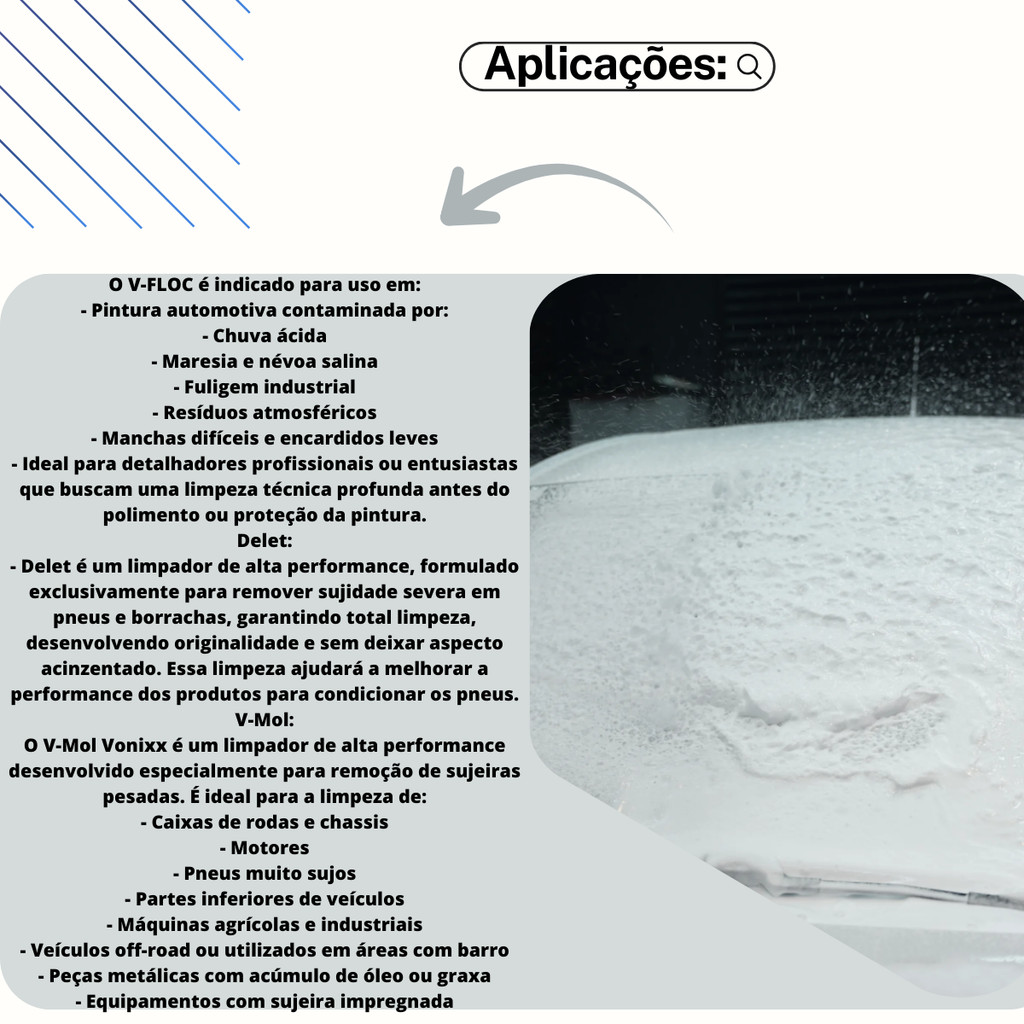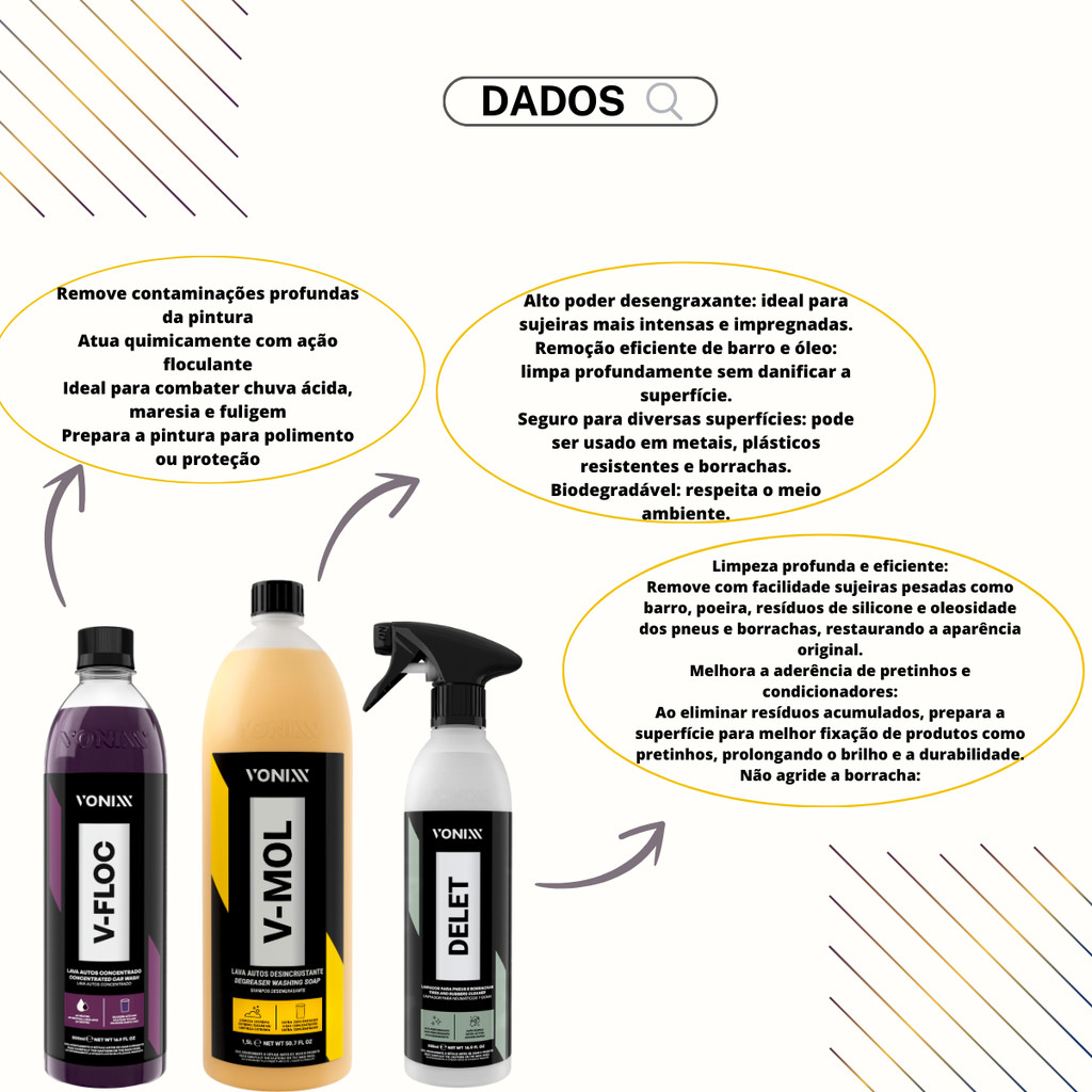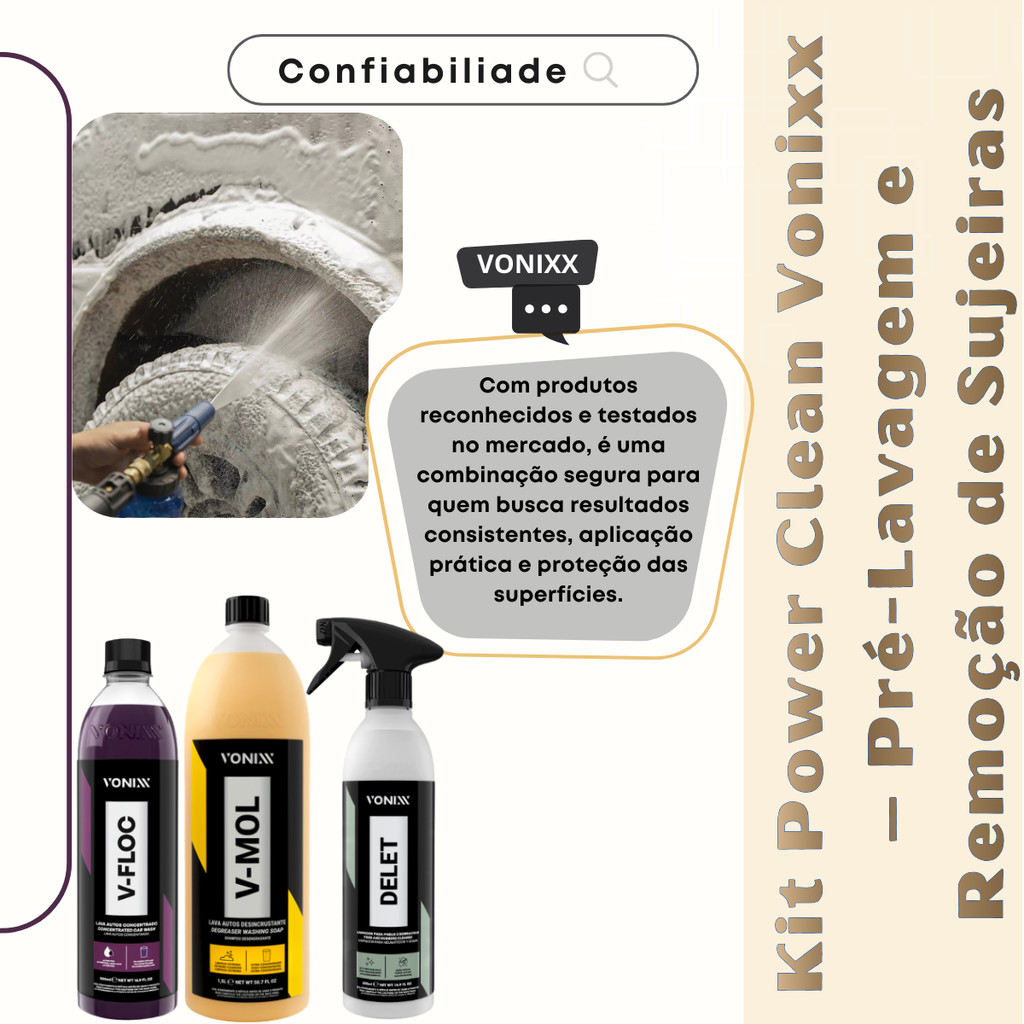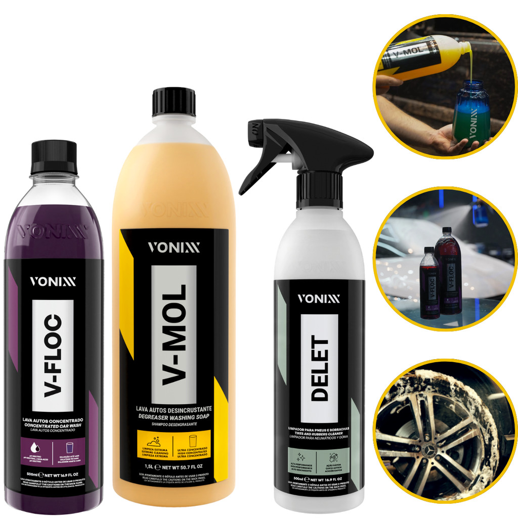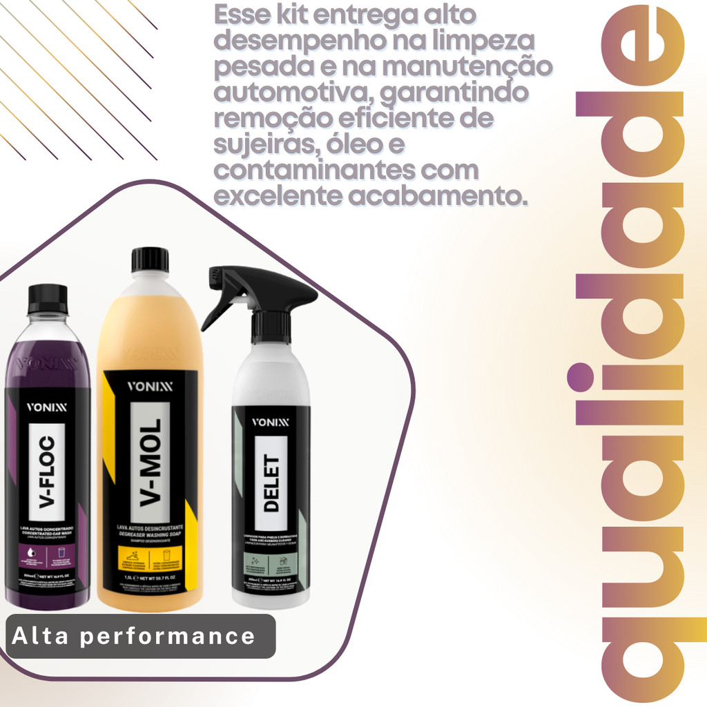 Kit Limpeza Automotiva Vonixx Alto Desempenho Para Sujeira Pesada Com V-Mol V-Floc e Delet