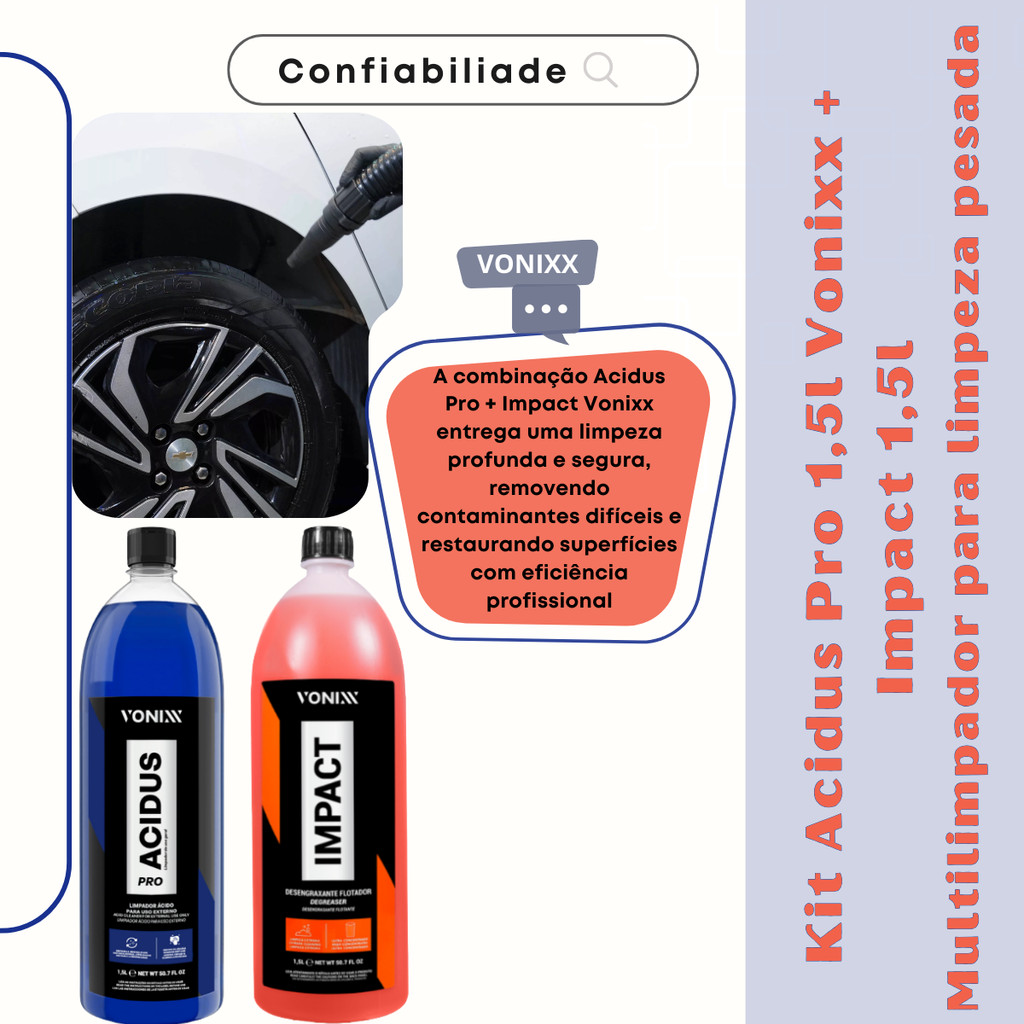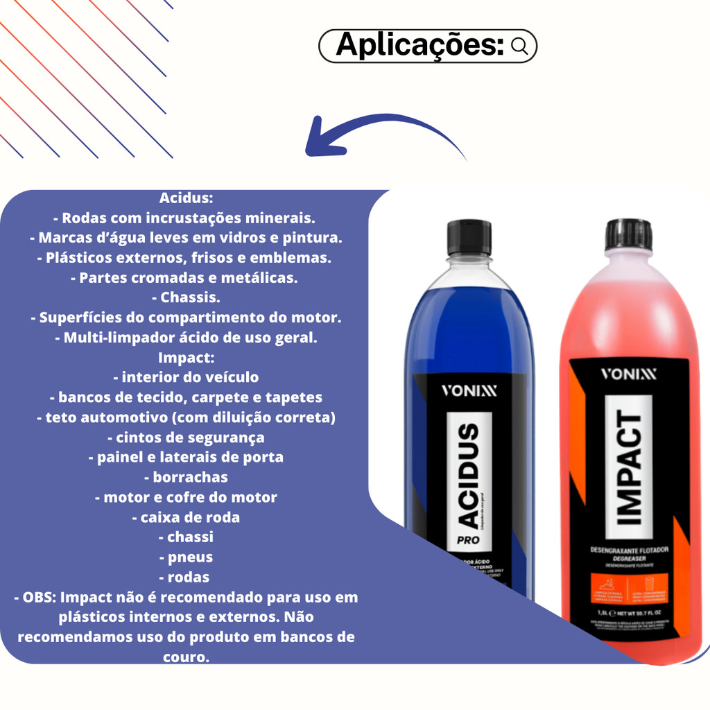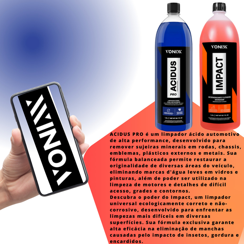 Kit Vonixx Acidus Pro 1,5L + Impact Flotador Limpeza Ácida e Pesada Automotiva