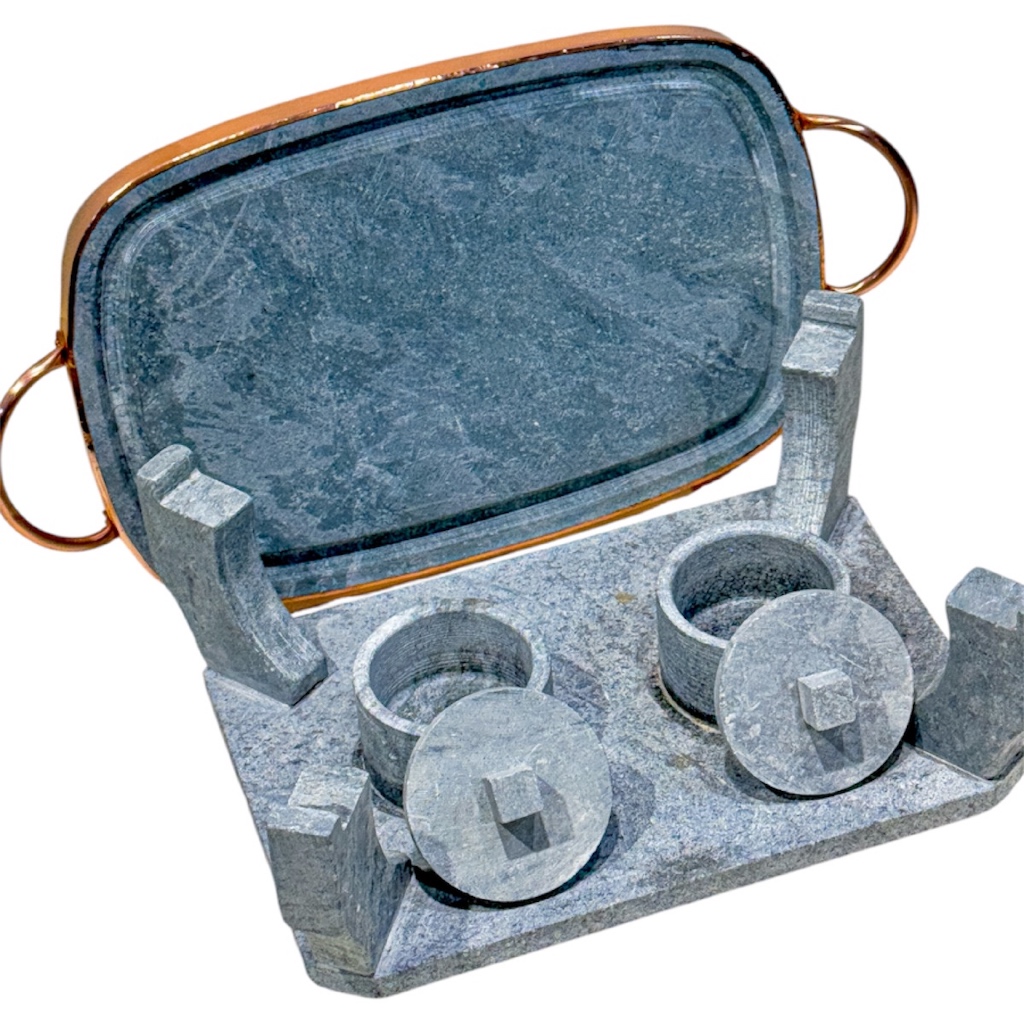 Churrasqueira Para Carne Churrasco 32x22 Cm Pedra Sabão Com Rechaud Fogareiro