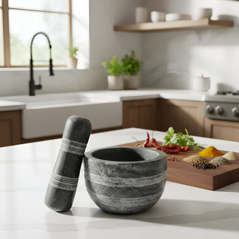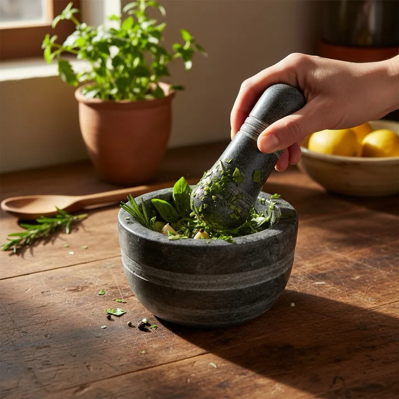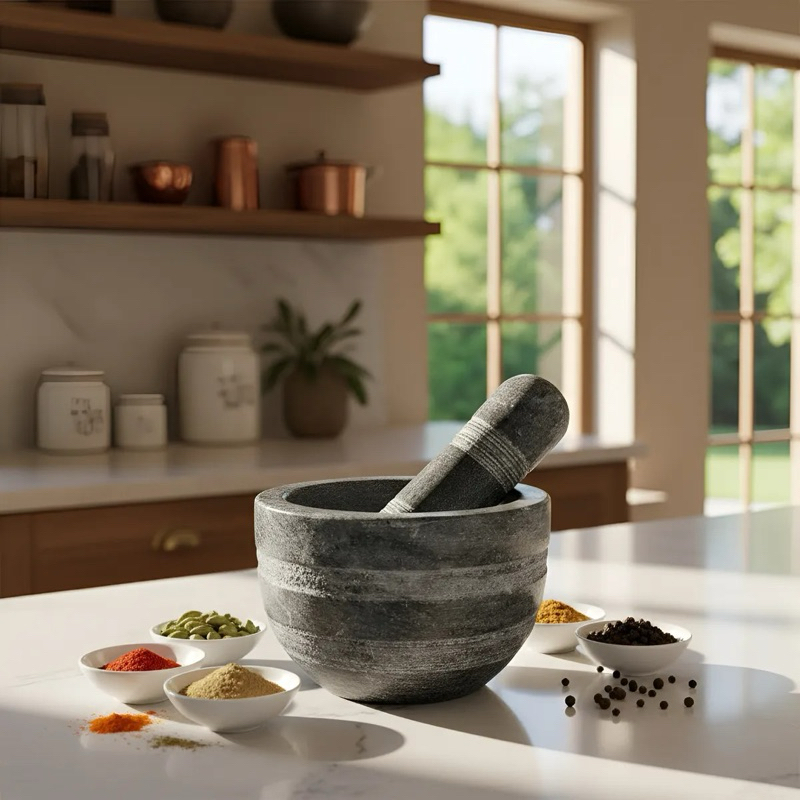 Pilão Almofariz pedra sabão + Brinde