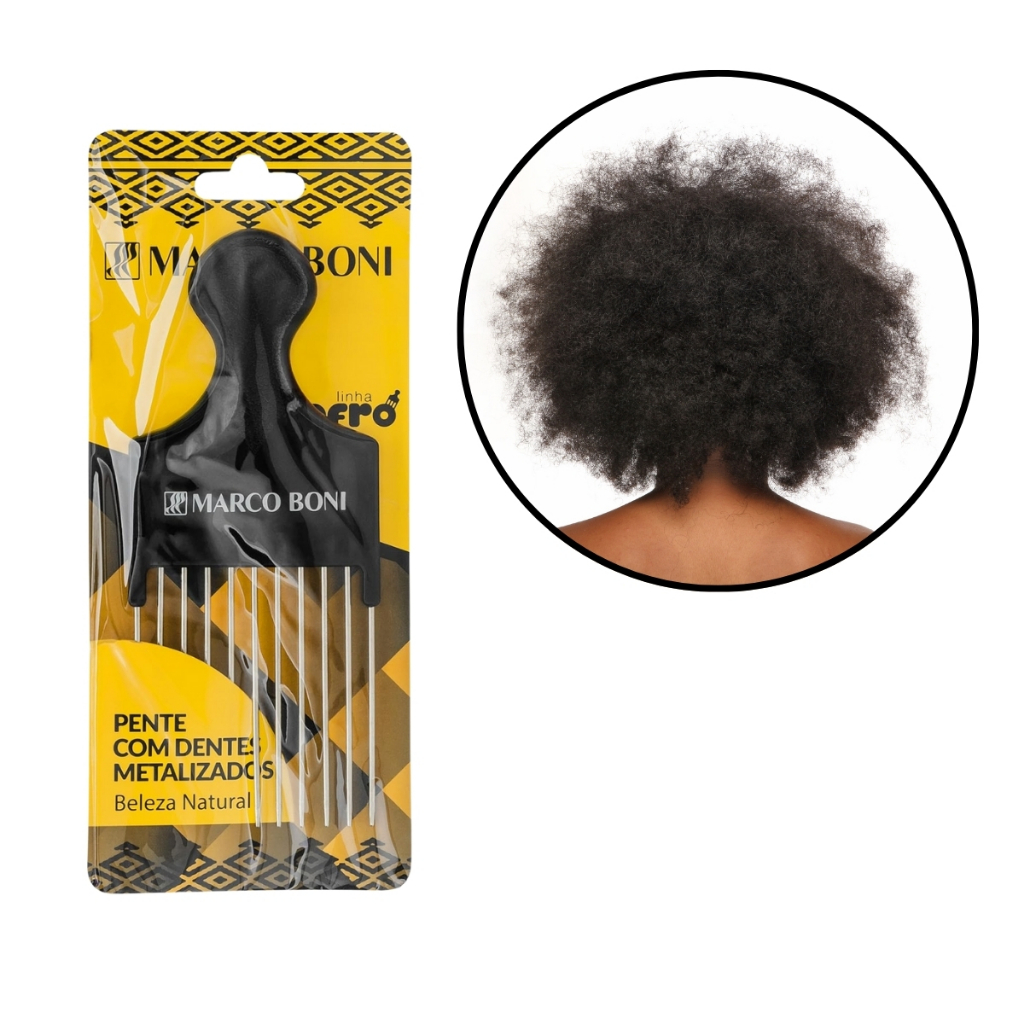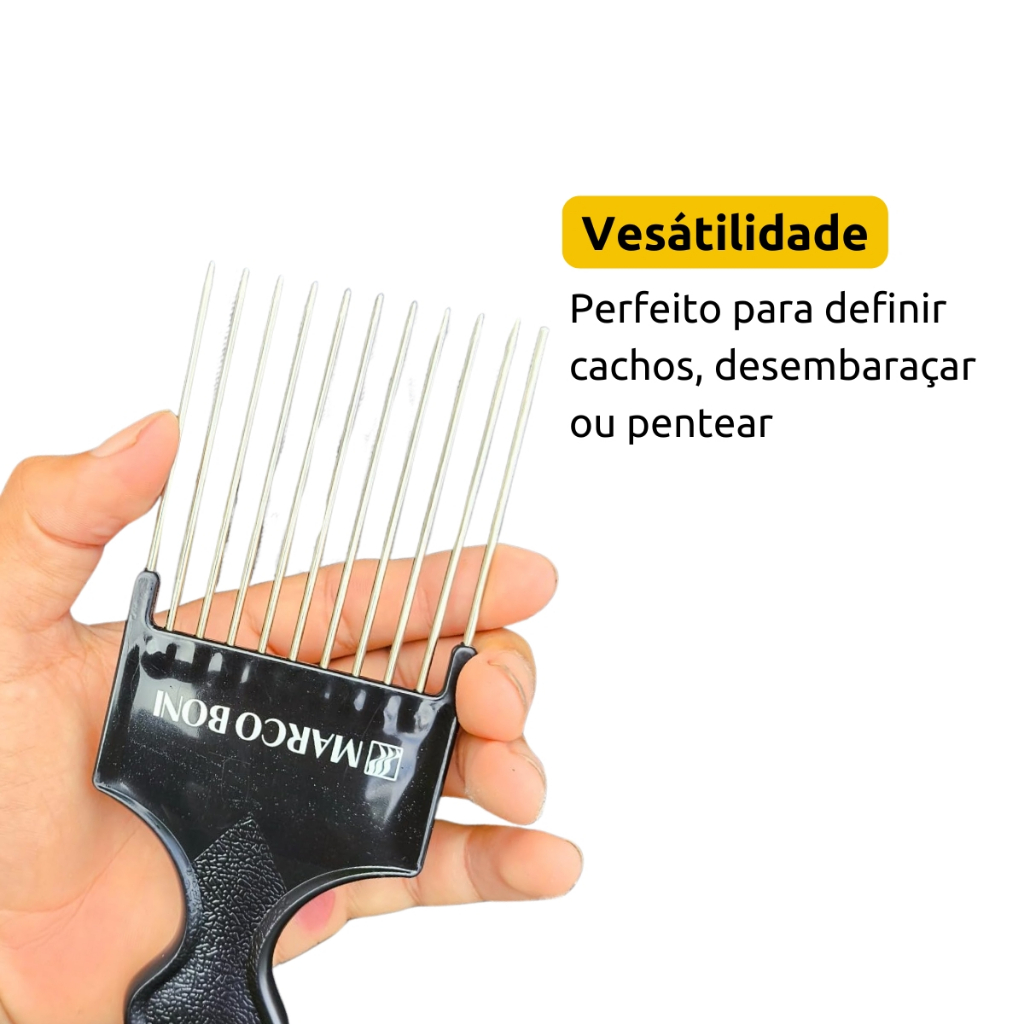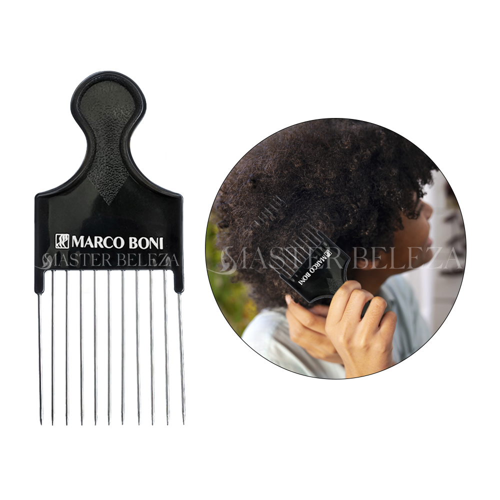 Pente Garfo Penteado De Cabelos Afro Dentes Metal Marco Boni + Esponja Para Cabelos Afro