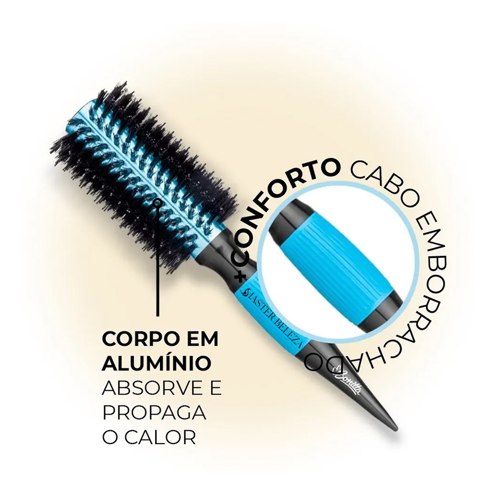 Escova De Cabelo Profissional Thermal Metallic 55mm Azul Pt