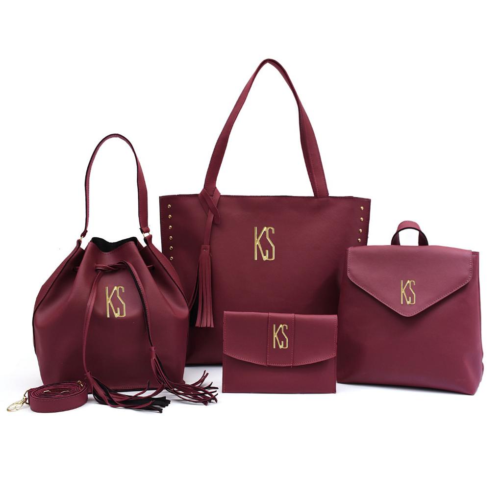 Kit 4 Peças Bolsa Feminina Grande Tote + Mochila + Sacola Saco + Porta Documentos Viagem Faculdade