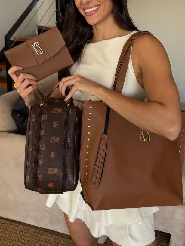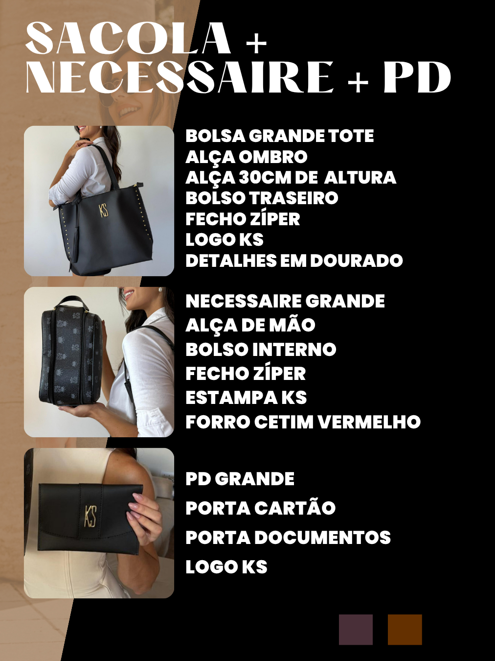 Kit Bolsas Feminina Bolsa Sacola Tote + Necessaire Grande + Porta Documento Faculdade/Trabalho