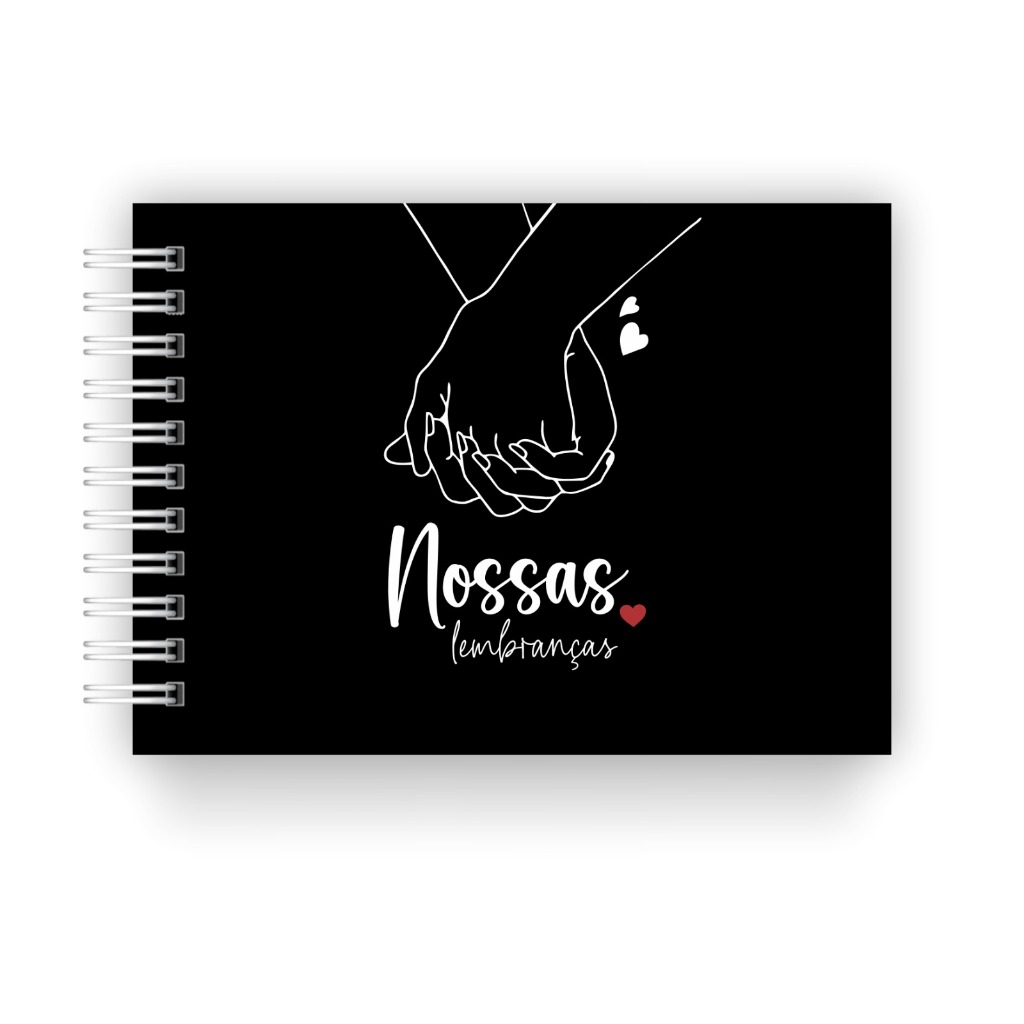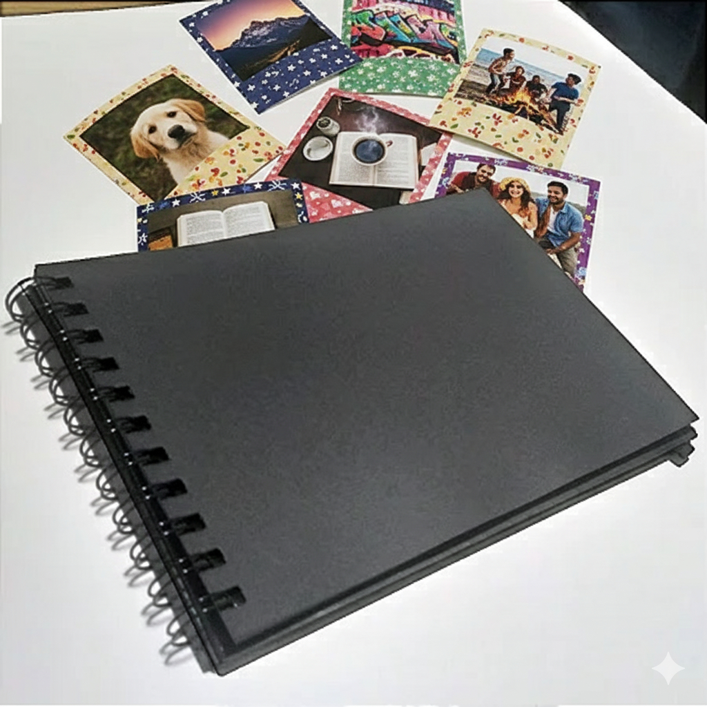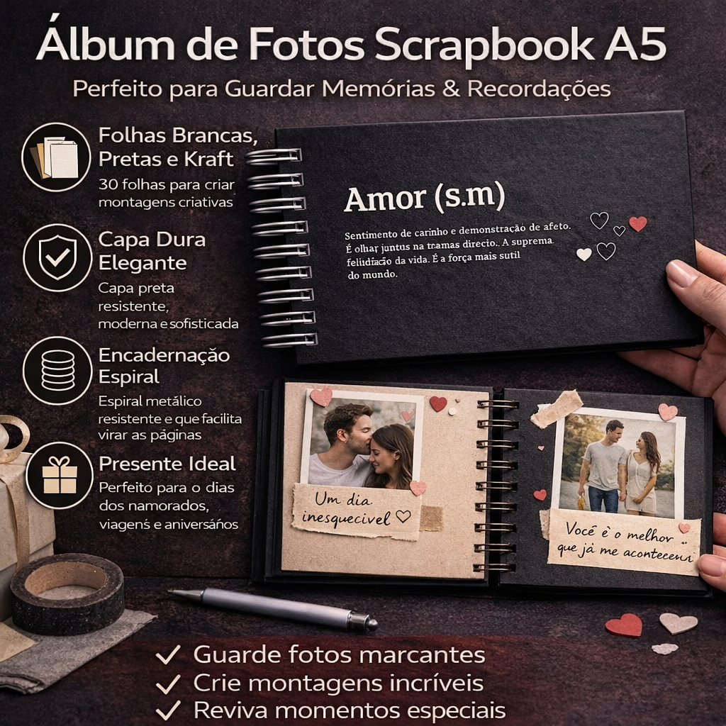 Álbum de Fotos Scrapbook A5 Folhas Pretas Capa Dura Memórias Viagens Dia dos Namorados