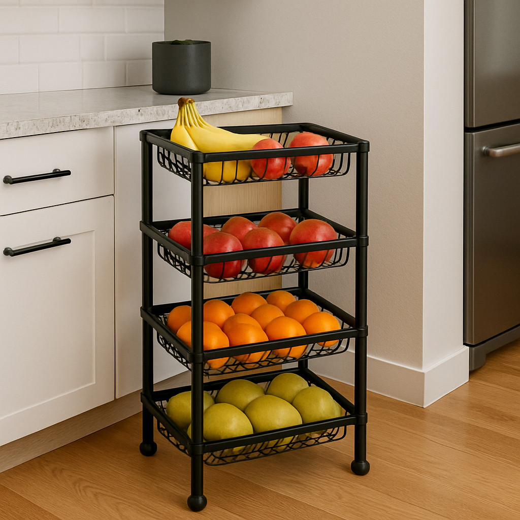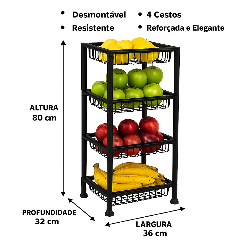 Fruteira De Chão Cesto Organizador Quadrado Com 4 Andares Empilháveis