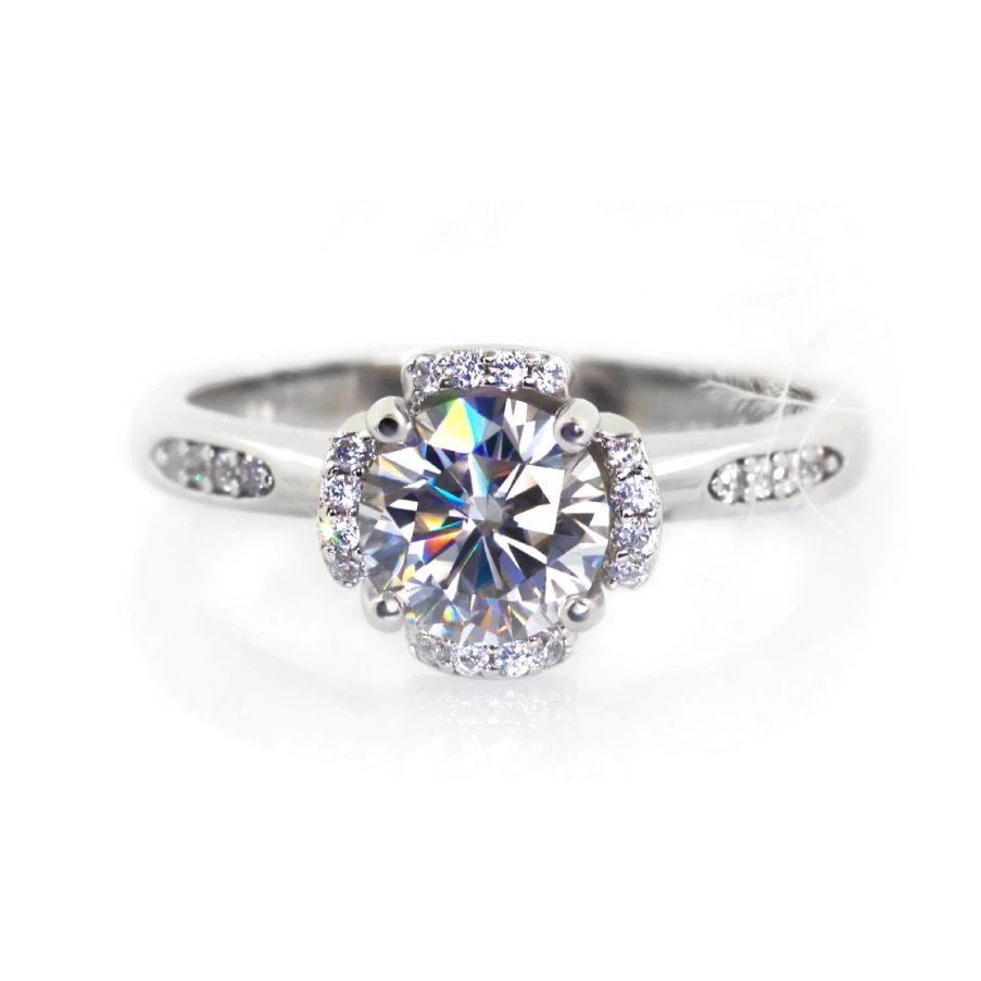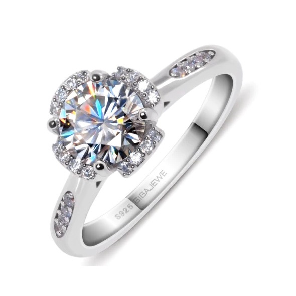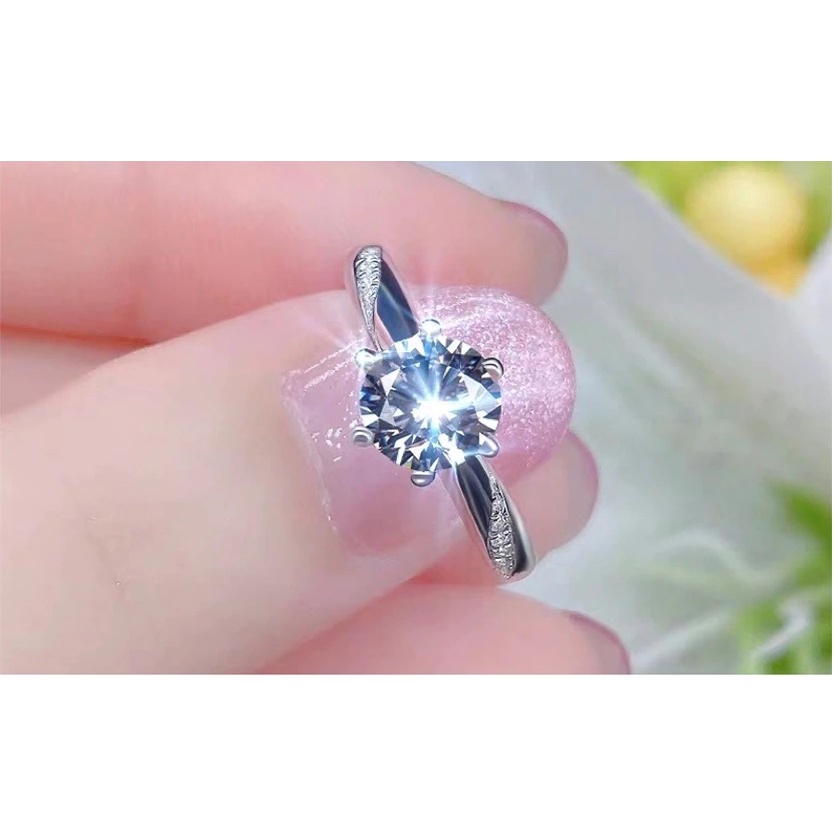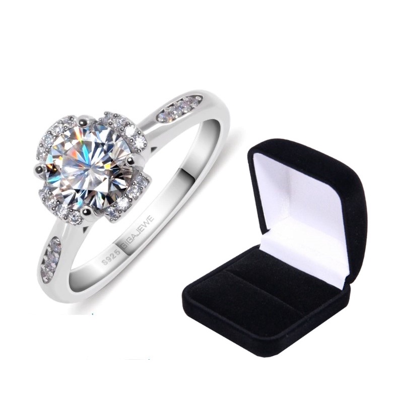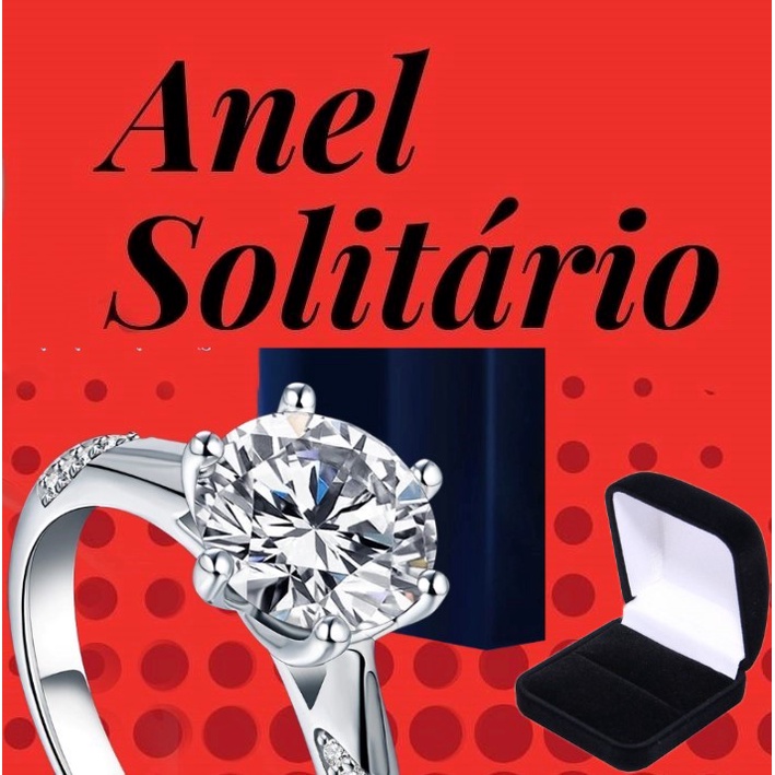 Anel Solitário banhado a prata com pedras + caixinha de luxo
