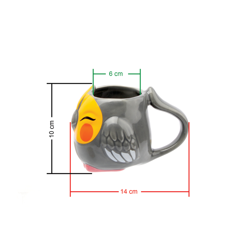 Caneca Calopsita Cinza 3D Cerâmica Enfeite Decoração Presente 300ML