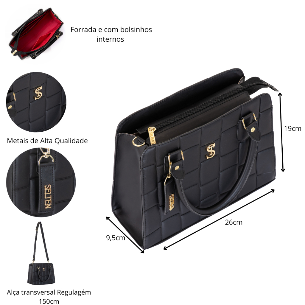 Kit Bolsas Femininas Transversal e de Mão com Carteira Selten