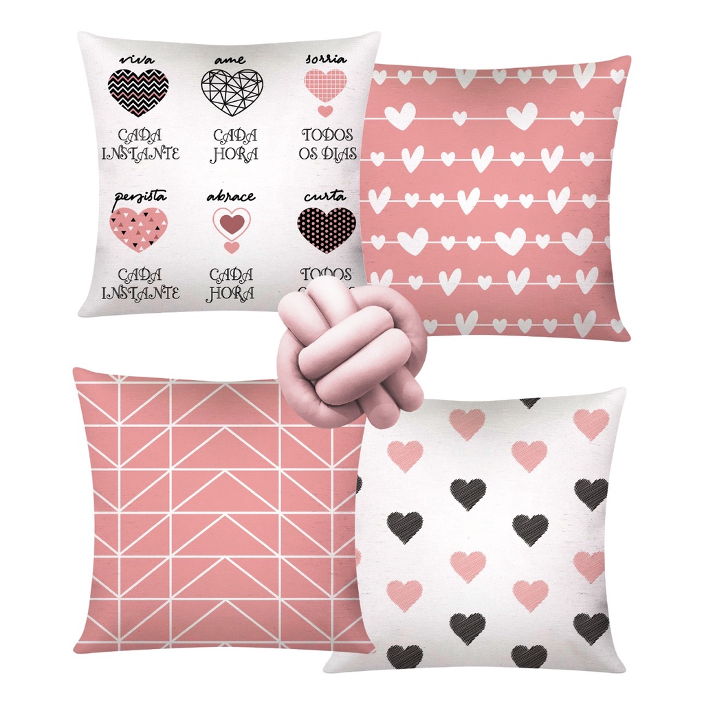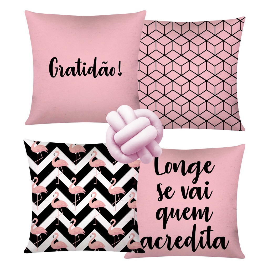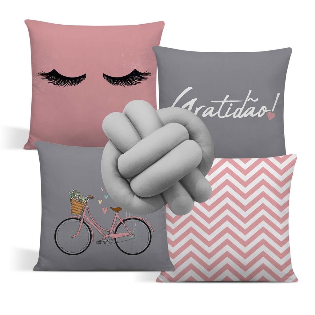 kit Com 04 Almofadas Completo, Capa + Refil + Nozinho