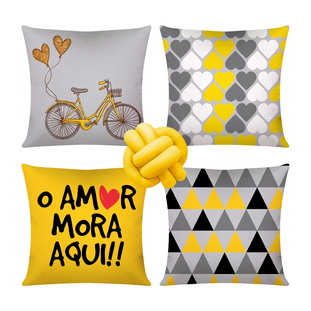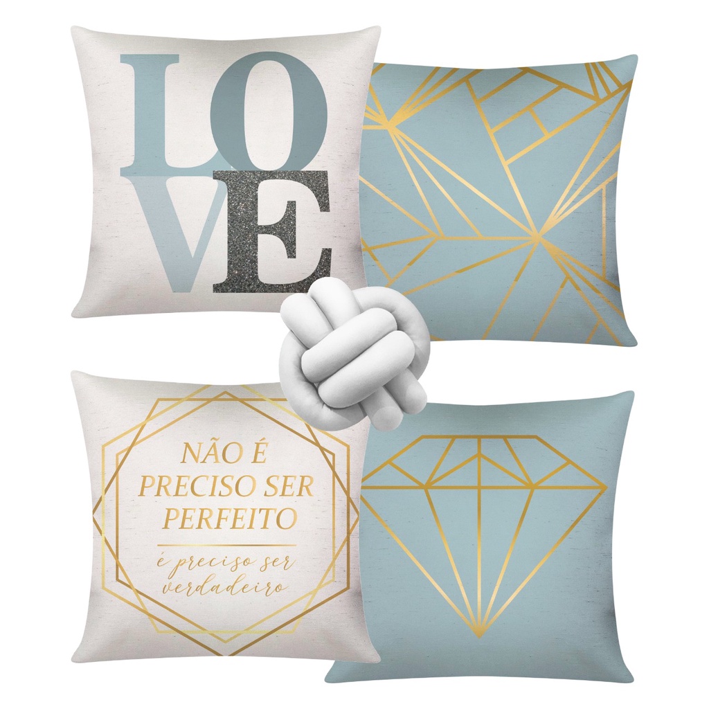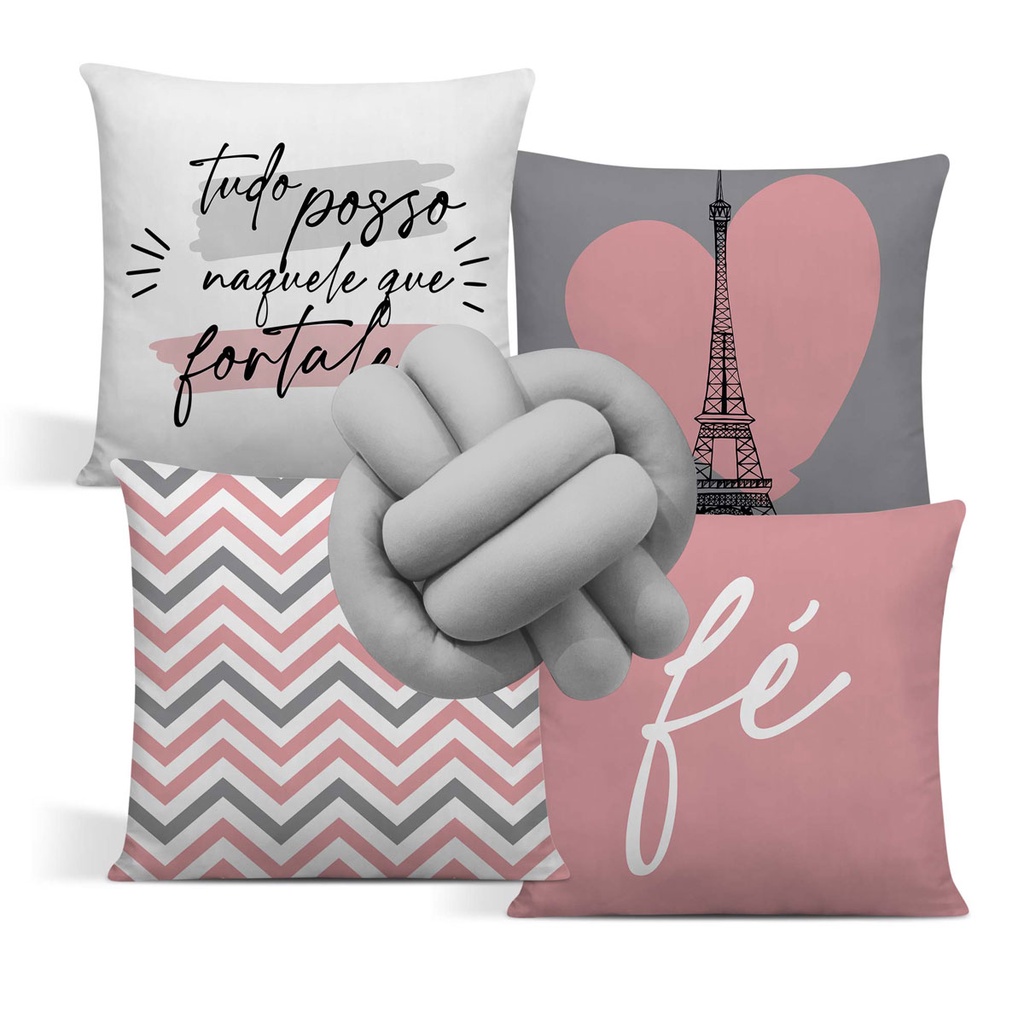 kit Com 04 Almofadas Completo, Capa + Refil + Nozinho