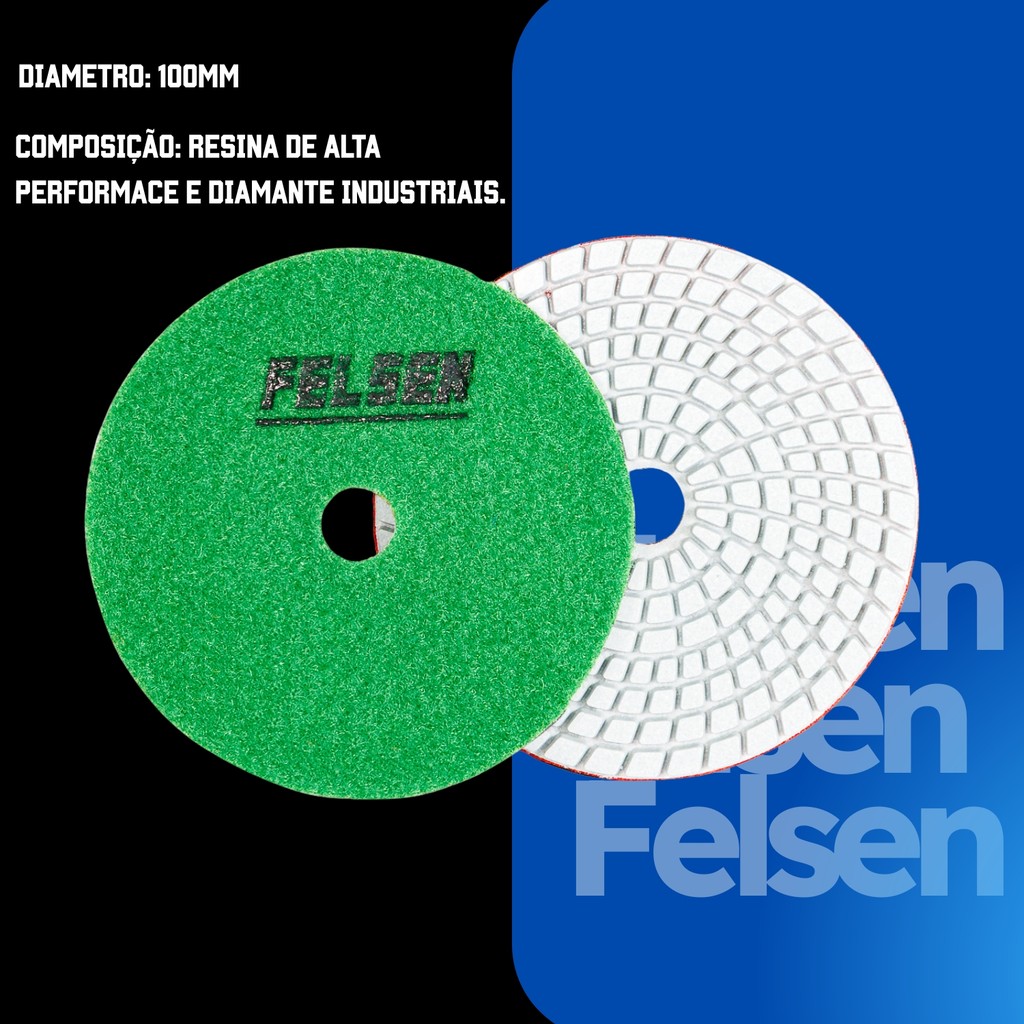 10 Lixa Diamantada para polir porcelanatos marmores e granitos 100mm polimento cortes 45 graus