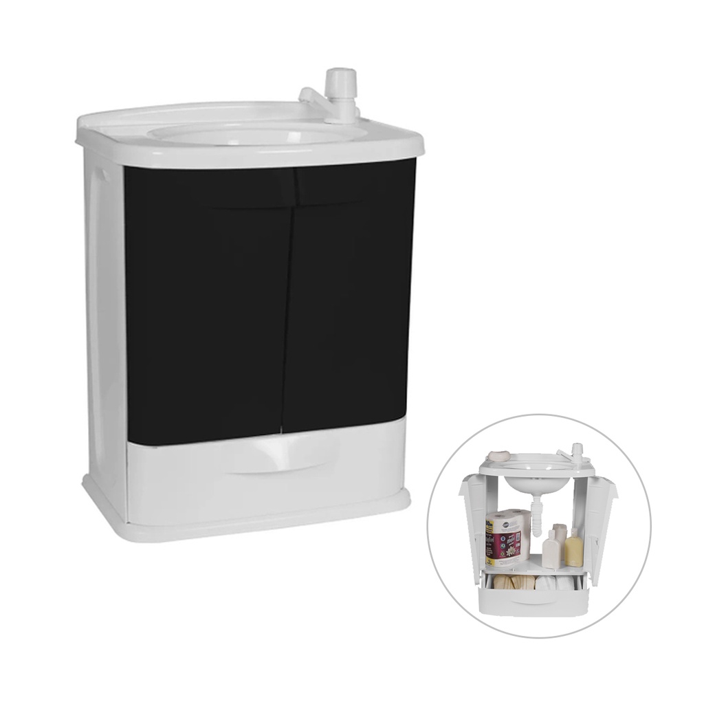 Gabinete Para Banheiro/Lavanderia Fit Com Lavatório 2 Portas 45,5x32x58 - Plástico