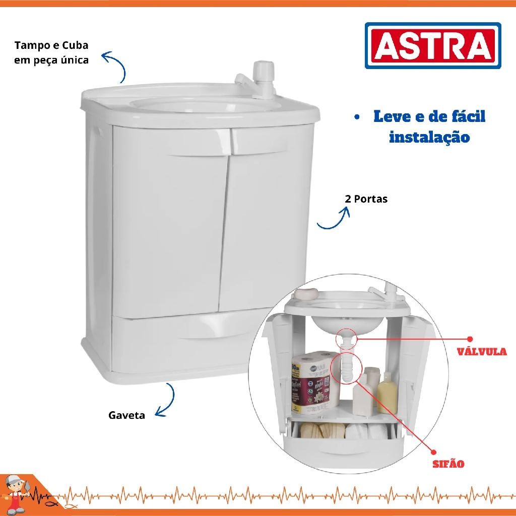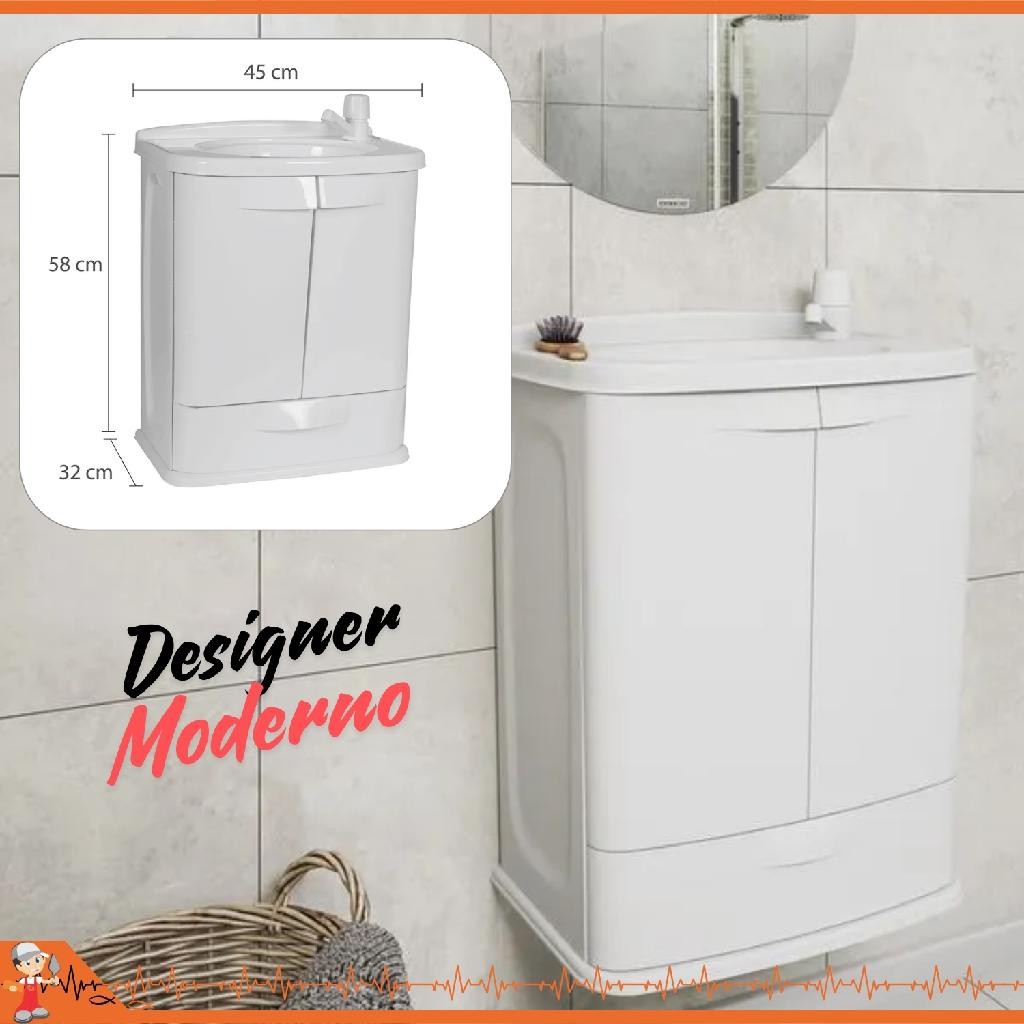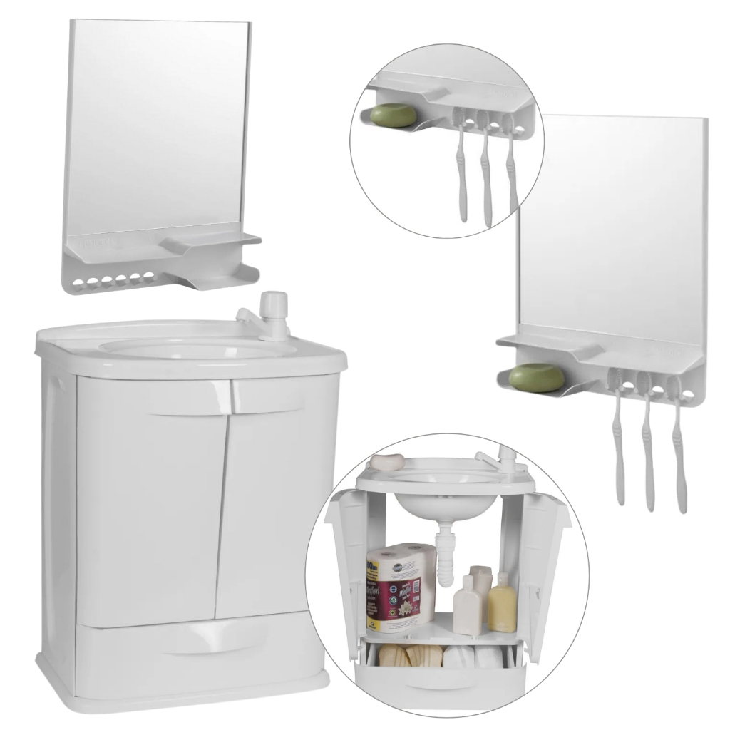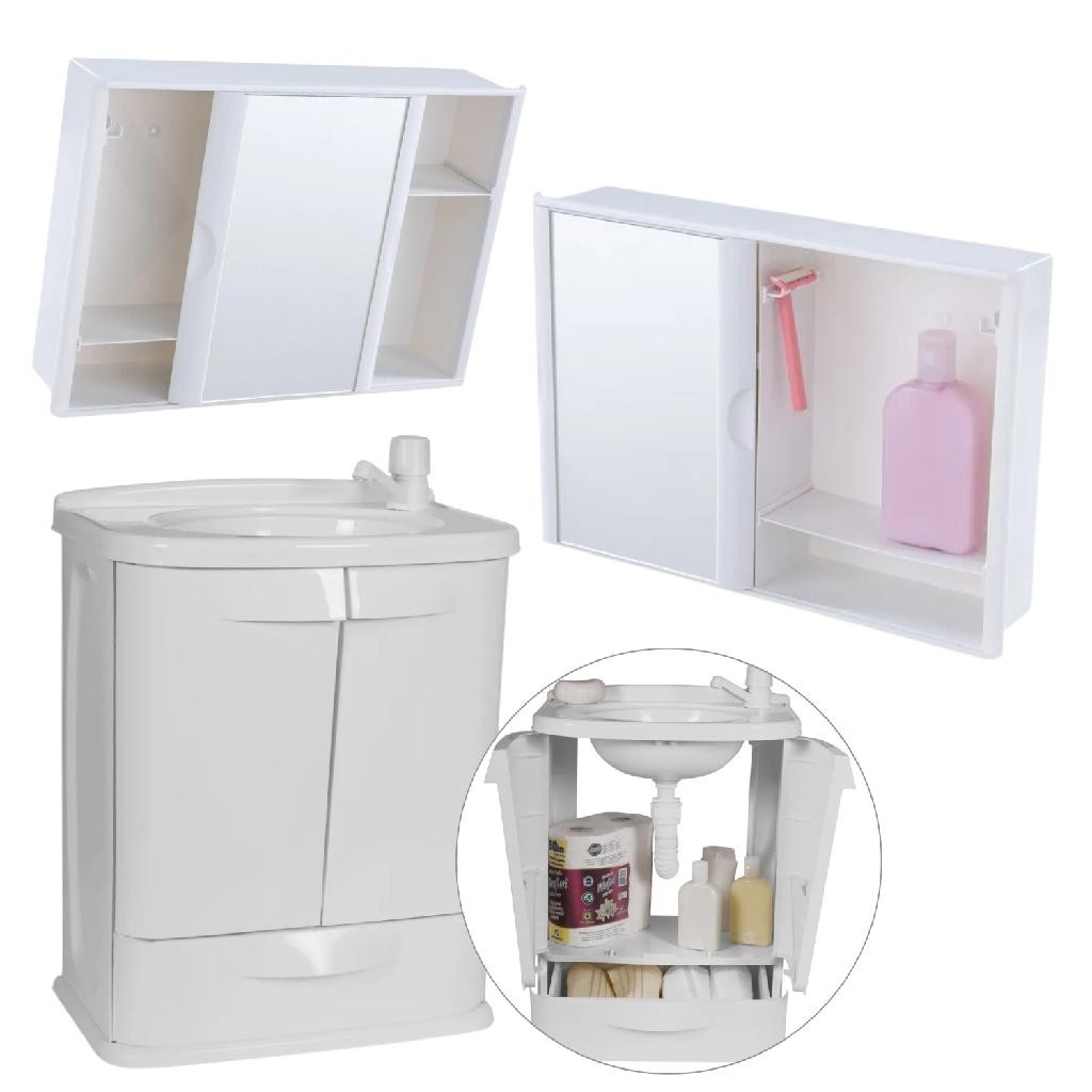 Gabinete Para Banheiro/Lavanderia Fit Com Lavatório 2 Portas + Armário Com Espelho E porta De Correr