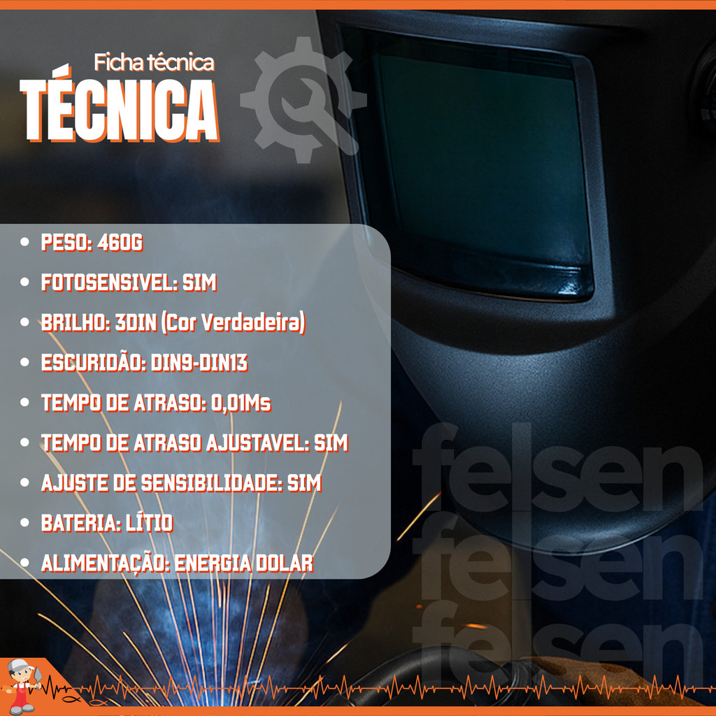 Máscara De Solda Automática Profissional Com Regulagem Cor Preto Liso