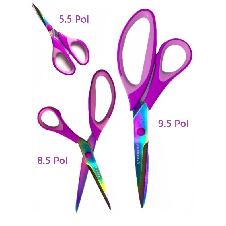Kit com 3 Tesouras com Lâmina de Titânio Lanmax Artesanato Patchwork multiuso Tesoura Kit 3 Tesoura Titânio