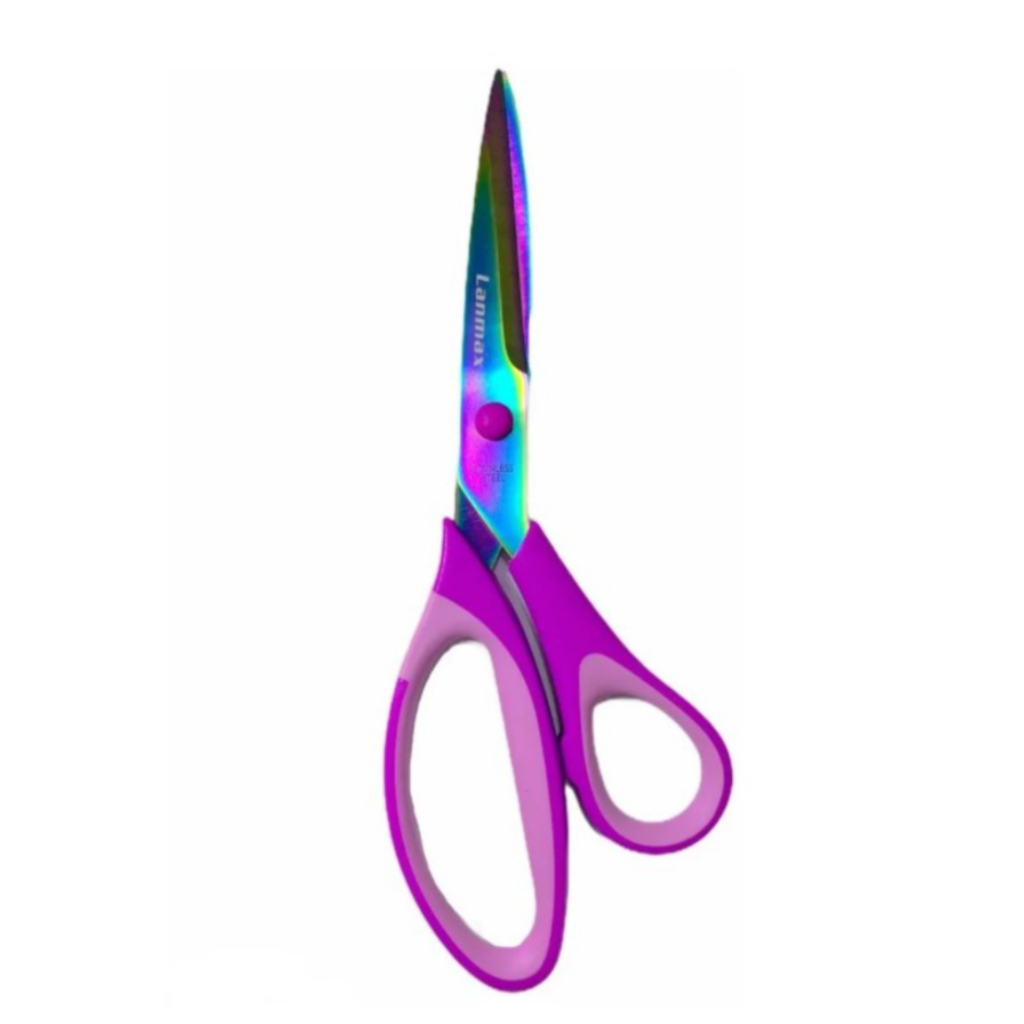 Kit com 4 Tesouras - 1 Tesoura Picotar 7mm Cor Preto + 3 Tesouras Titânio Lanmax Cor Roxa e Rosa