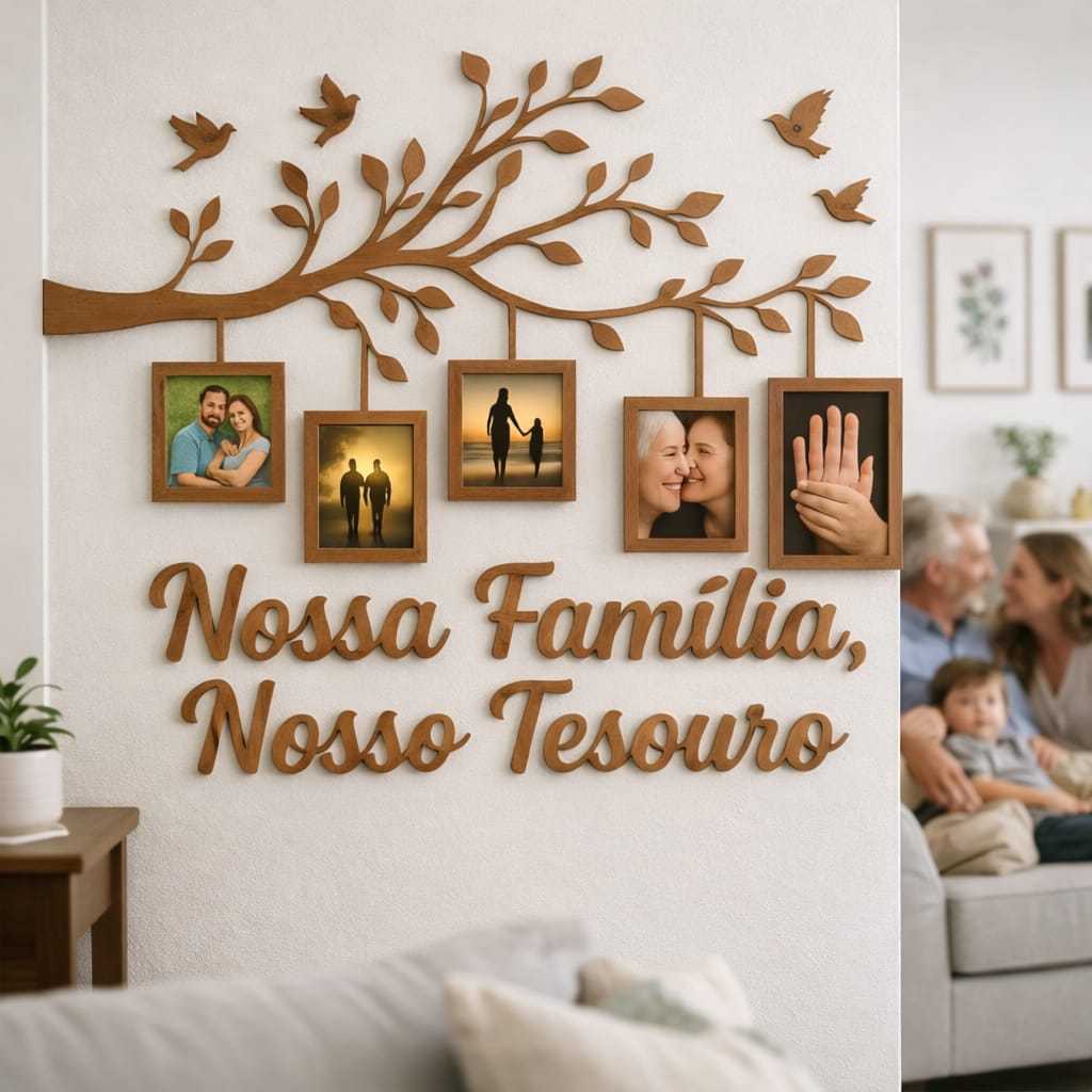 Quadro Decorativo em MDF 10x15– Árvore com Molduras para Fotos de Família