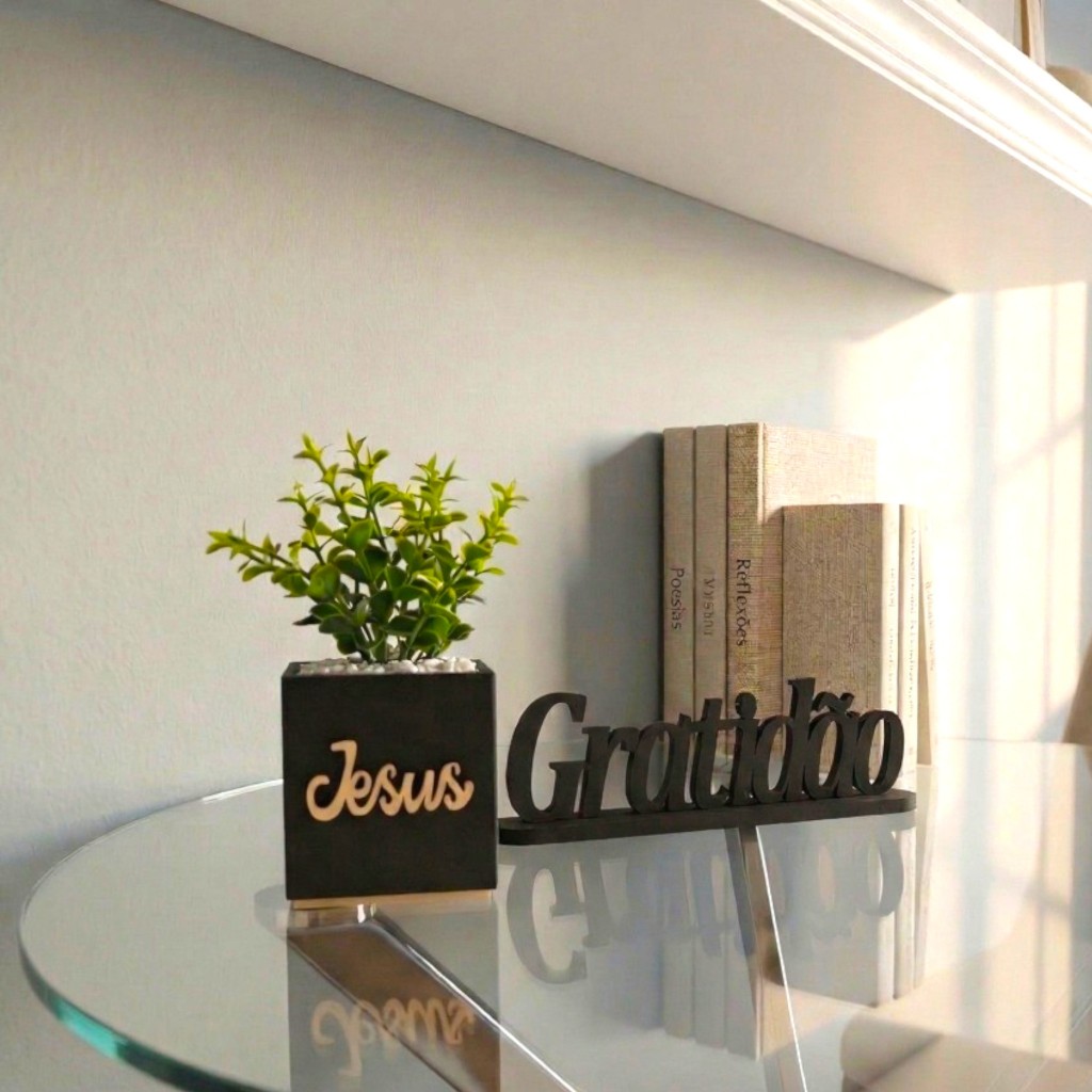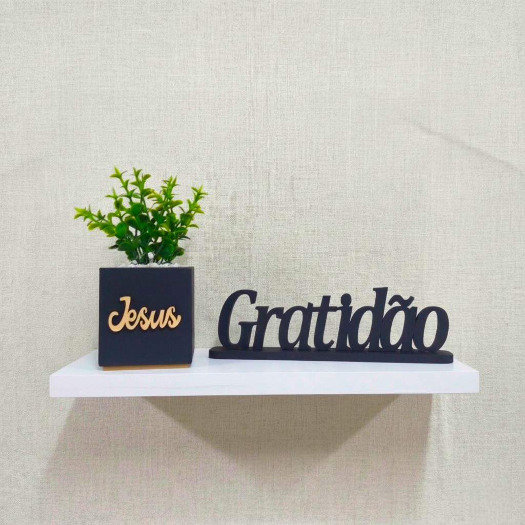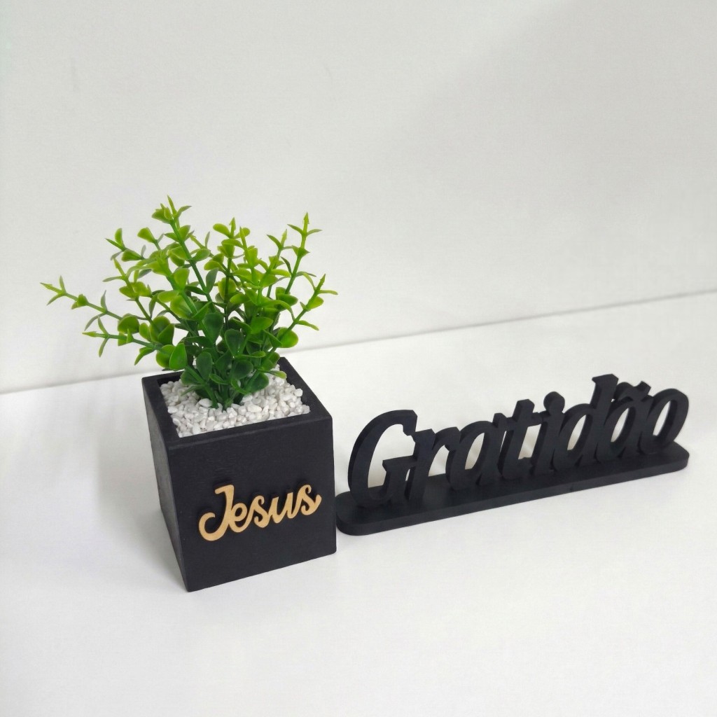 kit 01 Vasinho decorativo "JESUS" +Letreiro de Mesa "Gratidão" em mdf 6mm