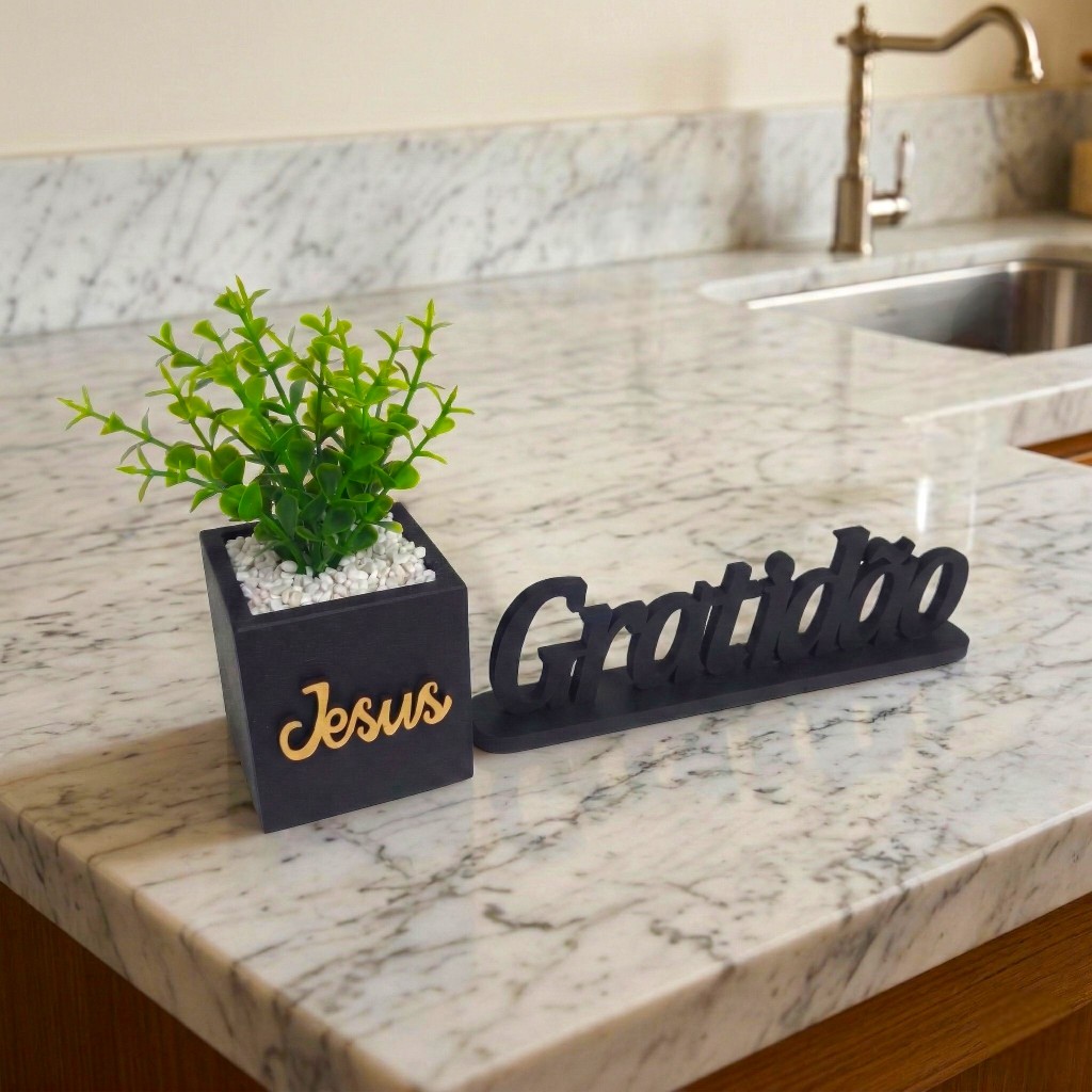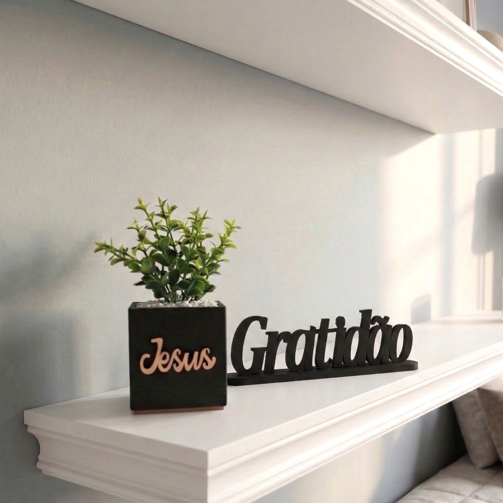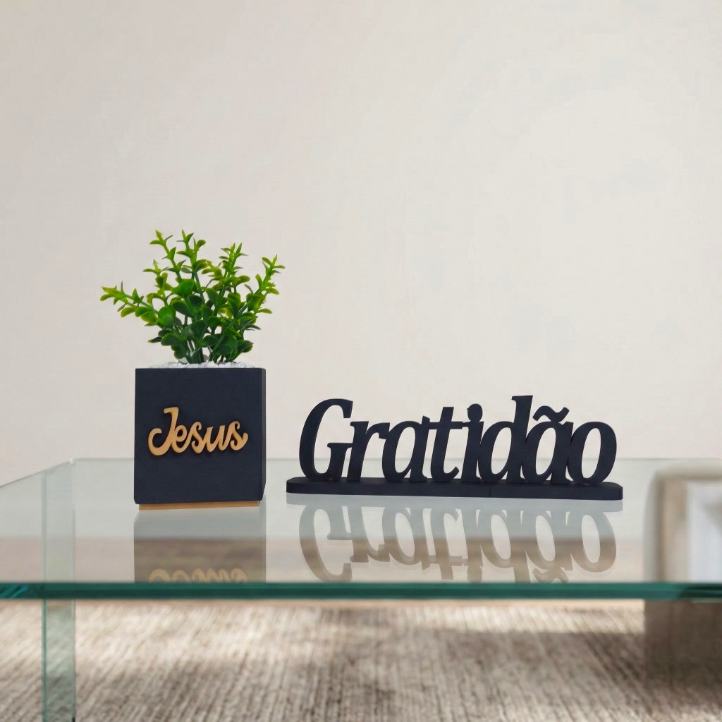 kit 01 Vasinho decorativo "JESUS" +Letreiro de Mesa "Gratidão" em mdf 6mm