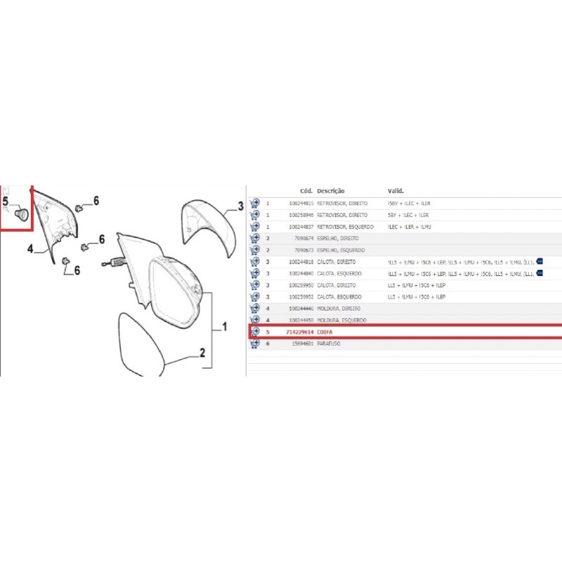 Par Coifa Comando Retrovisor Fiat Palio Siena Toro Novo Uno Toda a Linha Fiat