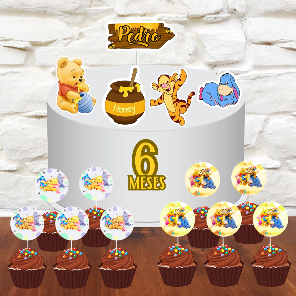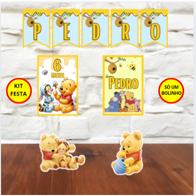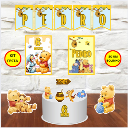 kit personalizado aniversário ursinho urso pooh mesversário com nome e idade