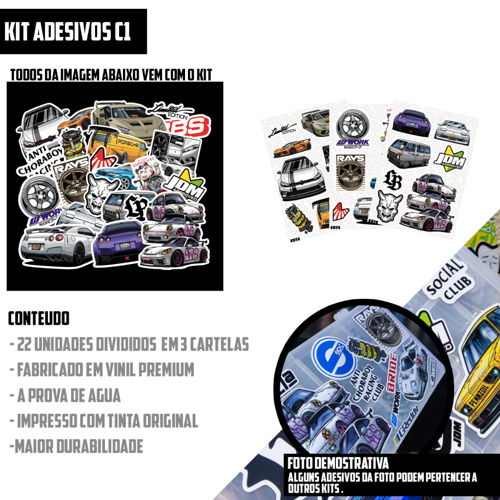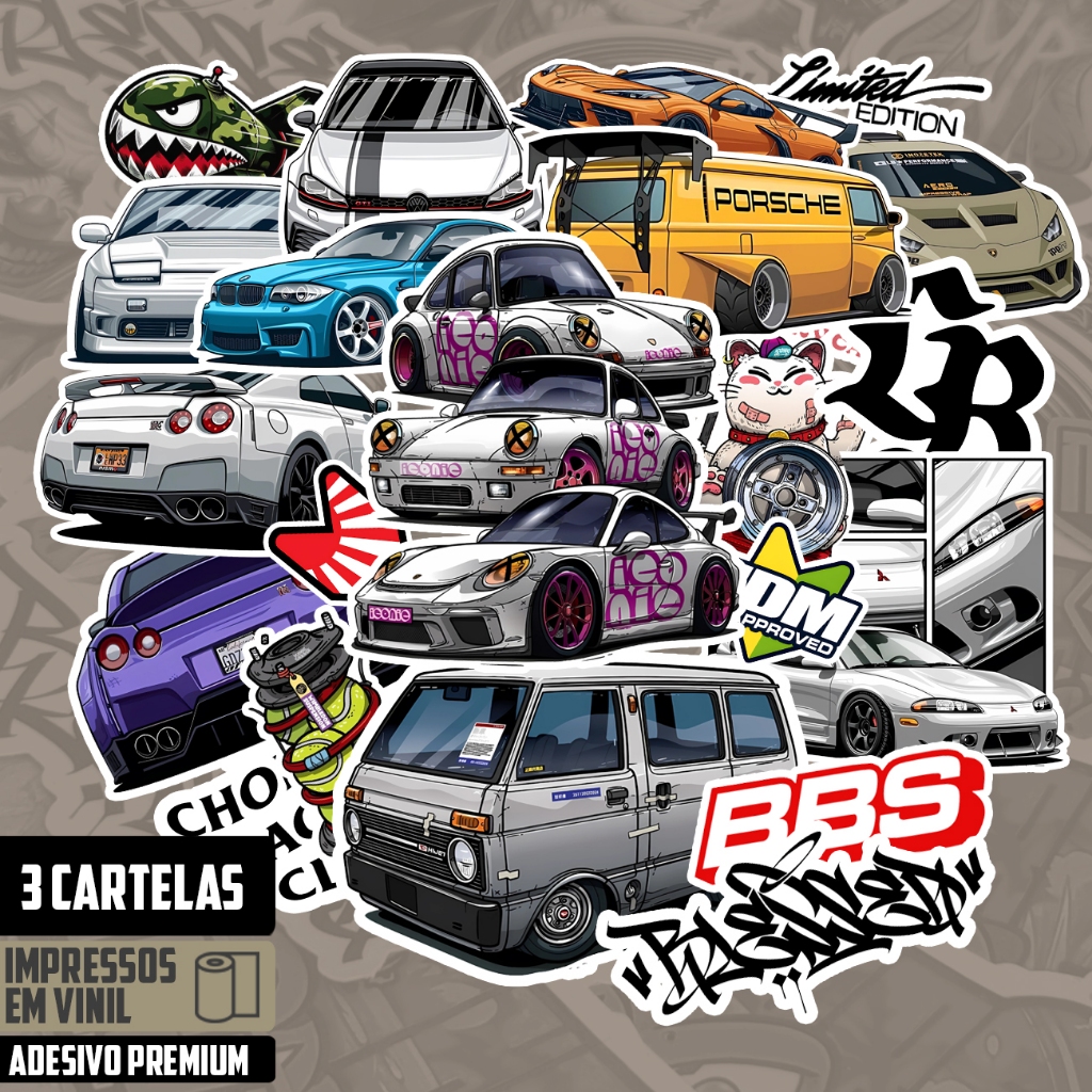 3 cartelas C-3 Tuning carros rebaixados Fixa chora boy em vinil Premium RGV