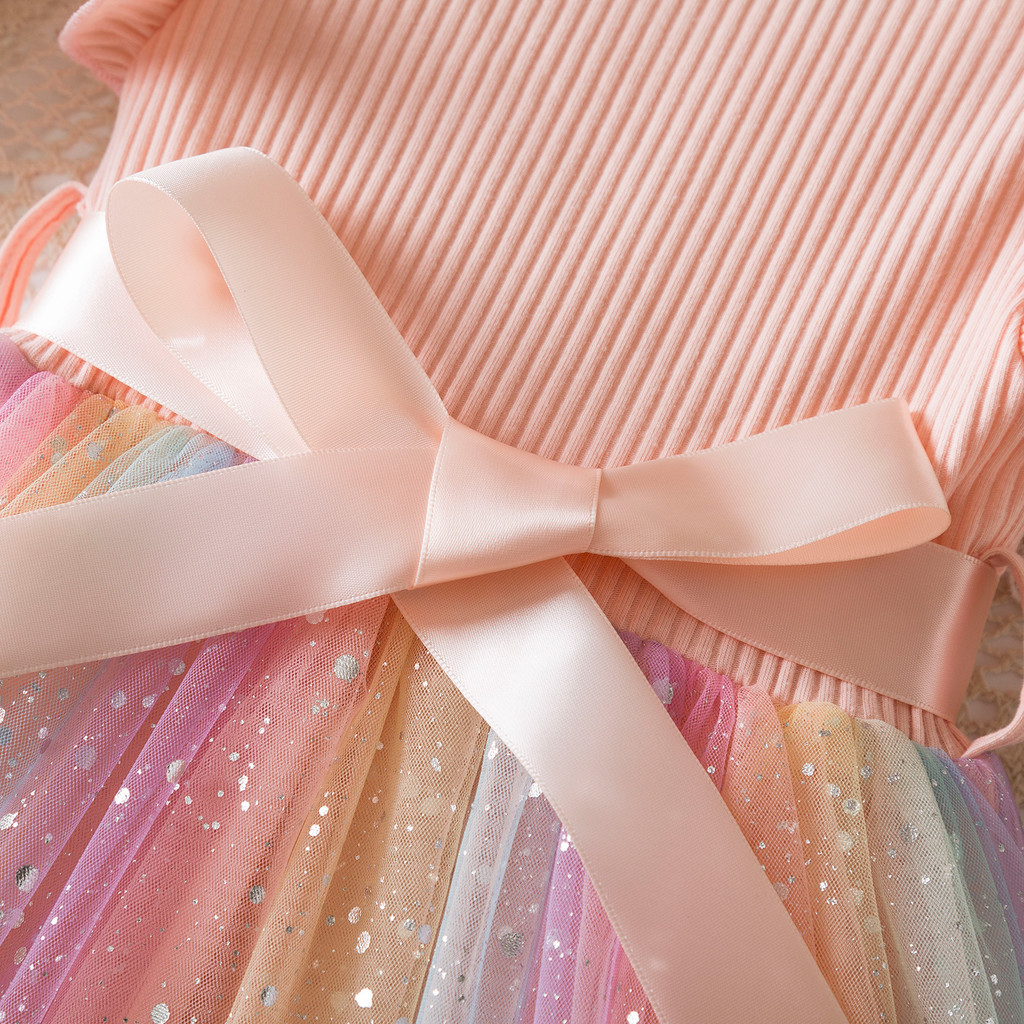 Bebê Meninas Vestido 1-5 Anos Arco-Íris Malha Tutu Moda De Princesa Para Crianças Aniversário Da Criança Roupas De Verão